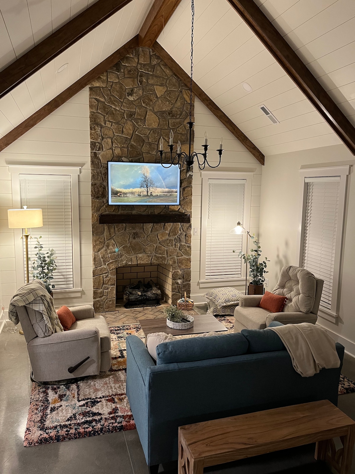 Udinga ikhefu ekucindezelekeni kokugaya kwansuku zonke? Woza usule ikhanda lakho futhi uphumule kuma-acre angu-26+ okuzola. Hlala emphemeni ongaphambili nenkomishi yekhofi futhi ubuke ukuphuma kwelanga futhi mhlawumbe ngisho nokubona izimuncumuncu ezimbalwa noma izimfudu ezizulazula endlini. Qwala imizila ehlanganisa umfula noma uvakashele ichibi lethu elincane elinenhlanzi. Ngesikhathi sakusihlwa sokupheka endaweni ehlungelwe emphemeni ongemuva njengoba uxhumana nabantu obathandayo futhi ubukele ukushona kwelanga.