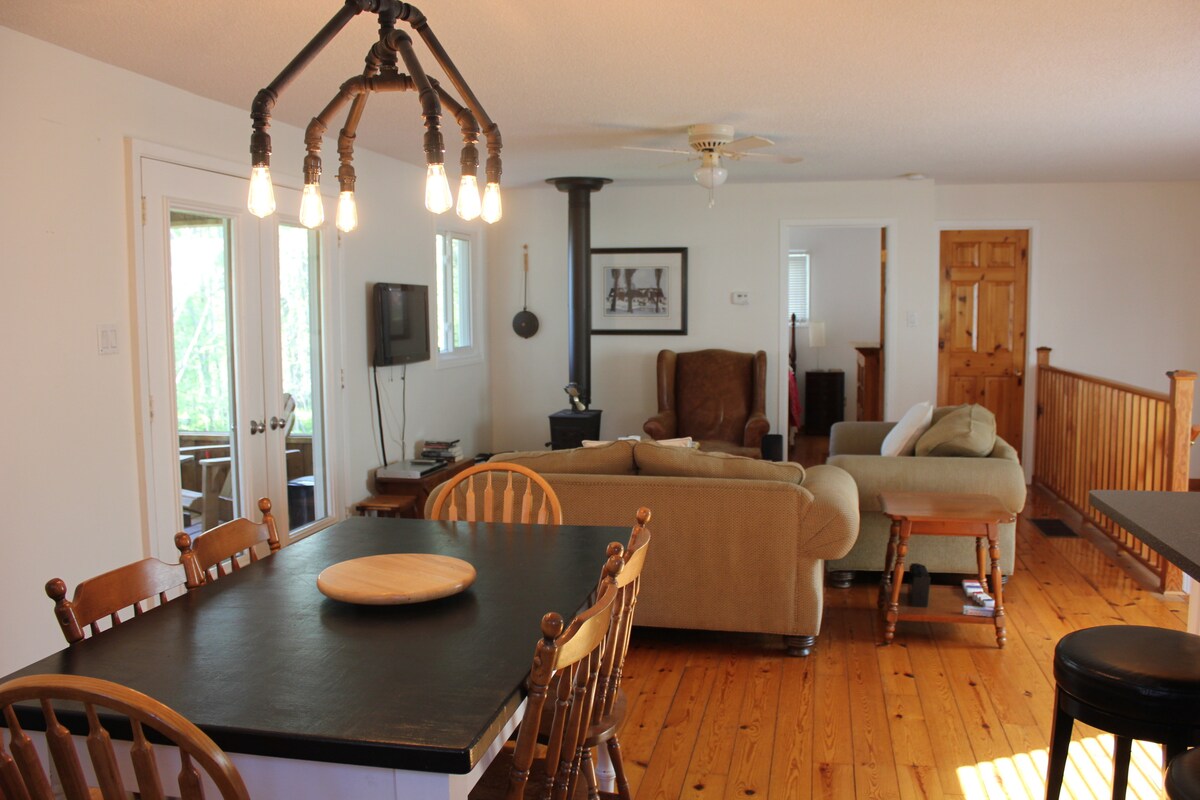Ukuvakasha kwangasese e-Chalk River e-Corry Lake ethulile. Abekho omakhelwane abonakalayo. Isikebhe, i-paddle board, ukubhukuda, ukuhamba ehlathini elihle eduze nendlu, hlala kuvulandi omboziwe onokubukeka kwechibi, ama-marshmallow athosiwe azungeze umgodi womlilo, noma upheke ukudla okuthandayo ekhishini lethu elinakho konke:) Ungasebenza usekhaya NGE-WIFI ne-cell reception! Kunemishini ephelele unyaka wonke. Abantu abangu-8 bangakwazi ukulingana kahle (kodwa amagumbi amancane). Indawo engasese. Imizuzu engu-20 ukuya edolobheni eliseduze. Bheka incwadi yeziqondiso eku-inthanethi.