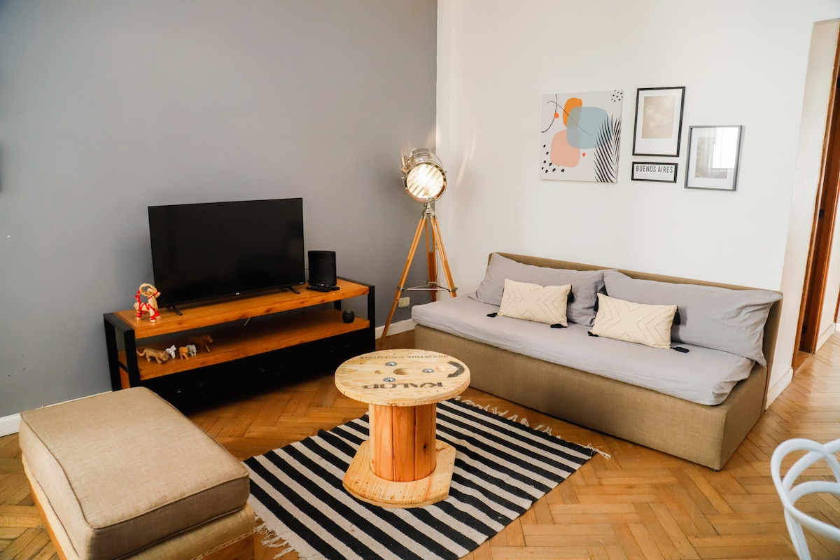 Ifulethi elinekamelo elilodwa elinebhalkoni . Isitayela esincane, Esikhanyayo, esivulekile, esithulile futhi esinendawo esezingeni eliphezulu, sisenkabeni ye-Barrio de Retiro / City Porteña, indawo eyodwa ukusuka e-Ave. July 9 namabhulokhi amabili ukusuka e-Ave. Sta. Fe. Easy, Central and Tourist: Bars, Cafes, Restaurants, Shops, House of Change, WUnion, Laundry, Parking, Car Rental/ Bike tours, Bus City tour point, Buquebus, Calle Florida, Plaza San Martín, Obelisk, Teatro Colón, Shopping, njll.