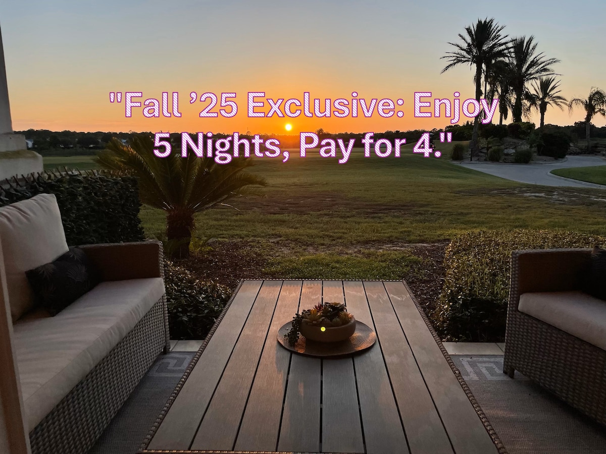 Ifulethi elinekamelo elilodwa elivulekile lezivakashi ezingaba ngu-4, elisendaweni ephakathi ne-Reunion Golf Resort eduze namapaki e-Disney, izindawo zokudlela ezikhangayo ezinkulu, ngaphakathi kwenye yezindawo zokungcebeleka ezinhle kakhulu ze-orlando, ukubuka igalofu, ijimu, i-pool jacuzzi efudumele, indawo yokupaka yamahhala, ibanga lokuhamba ngezinyawo ukusuka ezindaweni zokudlela ne-Starbucks. Imizuzu engu-15 ukusuka e-Disney Imizuzu engu-30 ukuya esikhumulweni sezindiza Imizuzu engu-25 ukuya ezindaweni zokuphumula zase-Orlando Akuvunyelwe ukubhema noma i-vaping (imali engu- $ 350 yentuthu noma ye-vaping)