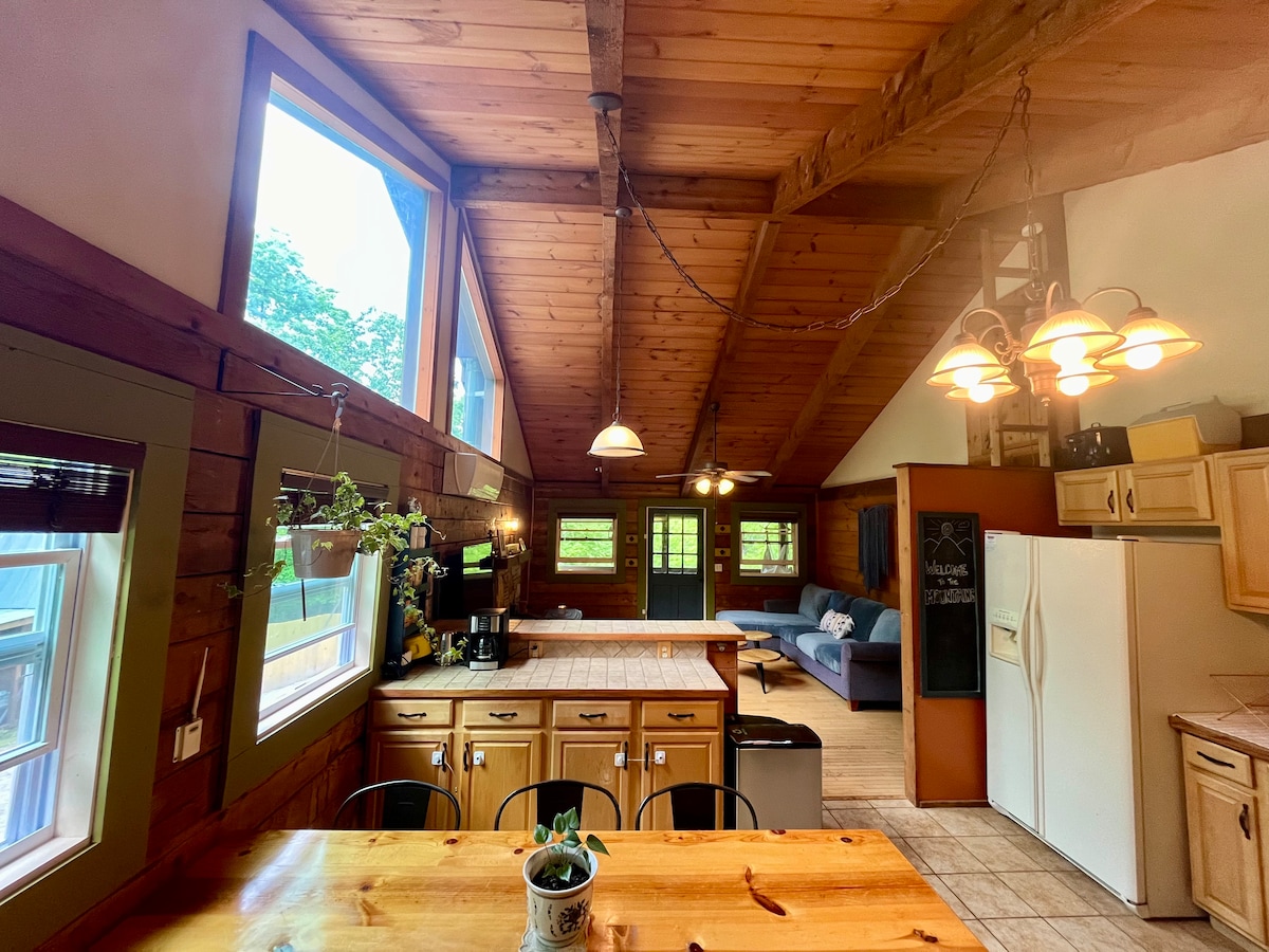 Indlu eyakhiwe ngamapulangwe e-Cloud iyindlu enhle, yekamelo lokulala elilodwa emphakathini oseceleni, ophrayivethi othule kakhulu futhi ulungiswe ngo-2023. Igumbi lokugezela lalilungiswe kabusha ngokuphelele, ifenisha entsha yegumbi lokuphumula, itafula elisha eliphezulu legumbi lokudlela lemabula, ikamelo lokulala elilungisiwe, phansi okusha. Kunombono omuhle ovela emphemeni wethu onefenisha yompheme ne-grill ye-propane. Ngaphakathi kunesakhiwo esivulekile esinophahla oluvulekile nophahla lwe-pine. I-Black Mountain yidolobha elihle kakhulu leholide, uzoyithanda le ndawo.