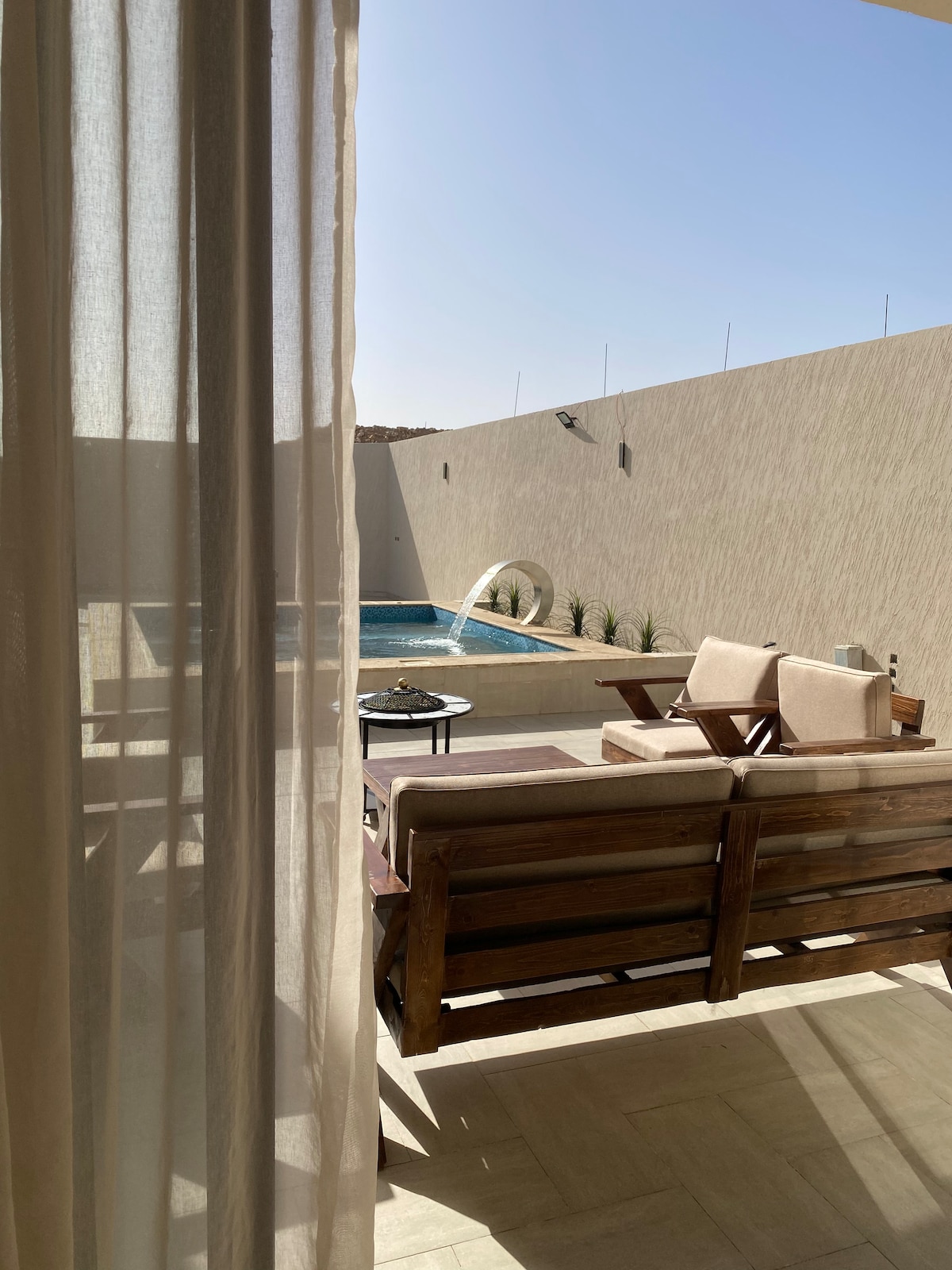 indlu yeholidi eyakhiwe ngokhuni enendawo engu-200 m². Inendawo yokuphumula eyinhloko yabangu-10, izihlalo zangaphandle ezingu-8, kanye nendawo yokubhukuda engamamitha angu-6×4 enesithiyo sokuphepha. Kuhlanganisa ikamelo elilodwa, ikhishi elinetafula lokudlela labantu abangu-5. Jabulela amasevisi engeziwe anjengokukhanya okwengeziwe, isistimu yomsindo, umgodi womlilo, i-Bayt Sha 'ar (itende lendabuko), nendawo yangaphandle eluhlaza. Ilungele ukuvakasha komndeni okuphumuzayo.