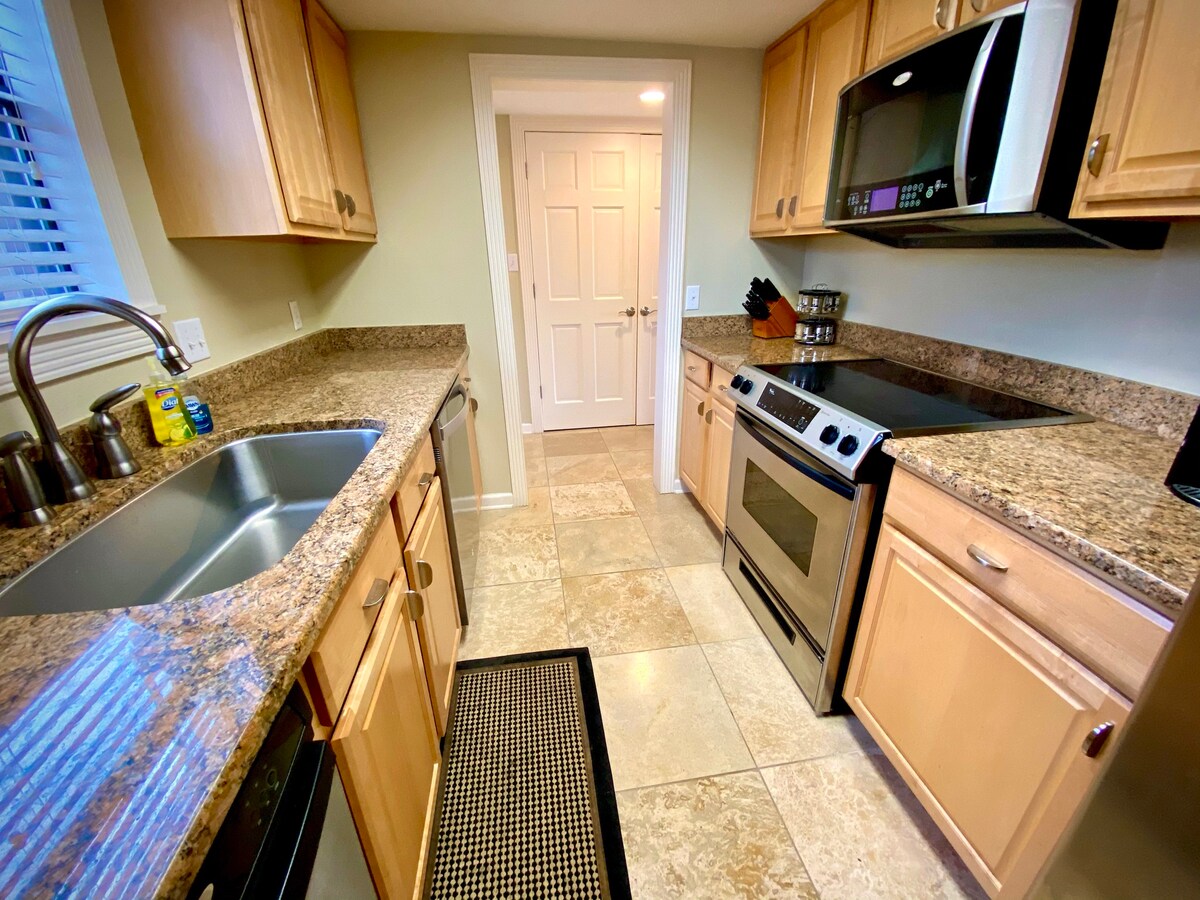 I-condo elihle. Iyunithi yaphansi phansi izinyathelo nje zokuya echibini. ISIKEBHE ESISHELELAYO siyatholakala. Isifiso esithandekayo sokubhukuda nokudoba. Sicela uqaphele: nakuba lena yifulethi eliphansi phansi liyizitebhisi ukusuka endaweni yokupaka eya phansi kuyunithi. Ifakwe kahle ngombhede omkhulu ekamelweni lokulala nombhede wosayizi we-queen tempur-pedic sofa. Izindlu zokugezela ezimbili ezigcwele zenza le condo ilale imibhangqwana engu-2 ngokunethezeka. Ikhishi elinakho konke, indawo yokuwasha enesitokwe esigcwele e-Unit, i-Smart tv ene-Hulu Live kuwo womabili amakamelo.