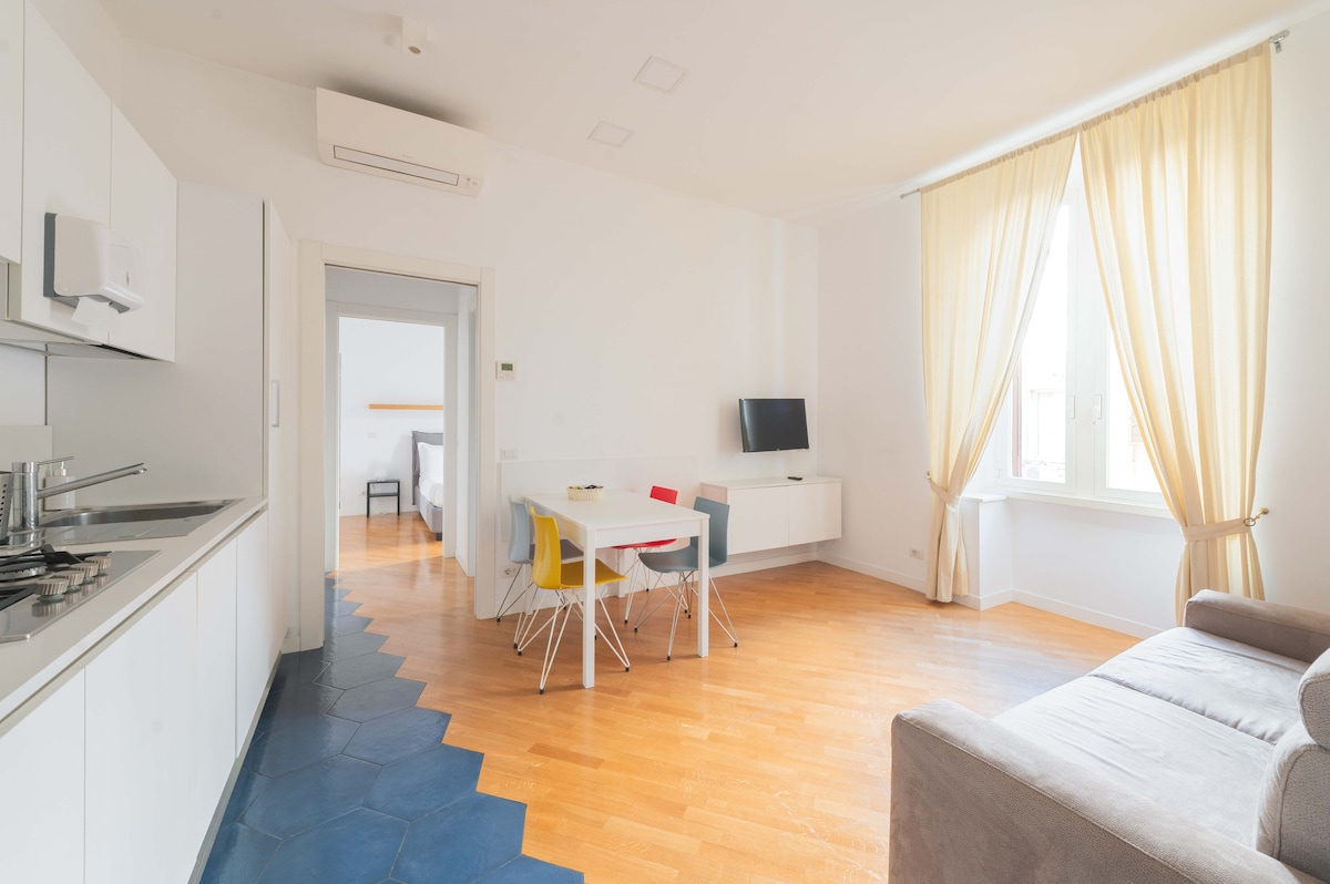 Phumula kusofa wesikhumba omuhle endaweni yokuhlala evulekile, enomoya kuleli fulethi elibuyekeziwe esakhiweni esingokomlando eduze ne-Opera House yase-Rome.. Iminyango ephakeme kanye nesitayela se-al fresco mural ivusa umuzwa wakudala phakathi nenkathi kanye nefenisha yesimanje. Ikhishi lenziwe ngesimanje ngokugcwele. Ukunikeza ukufinyelela kumasevisi ahlanganyelwayo njengegumbi lelondolo elinomshini wokomisa, ikamelo lokuzivocavoca, ne-sauna mahhala. Uzoba nefulethi lakho lonke elinegumbi lokulala elikhulu elinamagumbi okulala amabili anegumbi lokugezela elisegumbini lokuphumula elikhulu elinekhishi elincane. Kukhona negumbi lokugezela elikhulu. Amasevisi: - wi fi uxhumano lwe-inthanethi - i-air conditioning - ukushisa - i-Tv - umshini wokugeza izitsha - iketela lamanzi - i-toaster - uhhavini - uhhavini we-microwave - isitofu sokungenisa izinto Sicela uxhumane nami ezinsukwini ezingu-2 ngaphambi kokufika futhi ulungise isikhathi sokuhlangana ukuze ungene! Indawo ekahle yokubona nokudla. Ifulethi liseduze ne-Palazzo del Viminale. Izindawo ezithandwayo zomlando, okuhlanganisa i-Piazza Venezia, i-Trevi Fountain, Izinyathelo zase-Spain, zifinyeleleka kalula. Isiteshi sesitimela sase-Termini siqhele ngemizuzu engu-10. Uzokwazi ukufinyelela iningi lezindawo zomlando ezihamba ngezinyawo. Ifulethi lisebangeni lemizuzu engu-10 uhamba ngezinyawo ukusuka eTermini Station futhi emizuzwini engu-2 uhamba ngezinyawo usuka esiteshini sesitimela i-Repubblica. Sicela uqaphele ukuthi ifulethi lisesakhiweni sokuhlala lapho sidinga khona ukuhlonipha imithetho yendlu. Amaphathi awavunyelwe Asizamukeli izilwane ezifuywayo.
