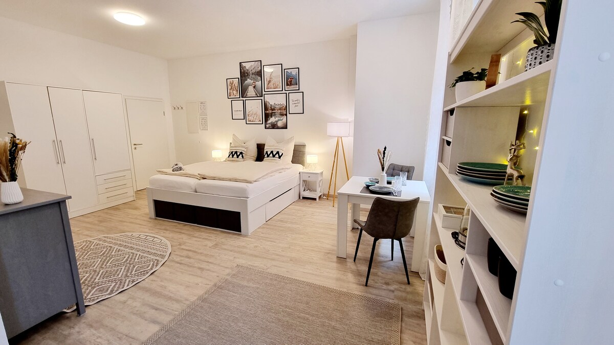 Jabulela ukuhlala e-StudioM - indawo esanda kusungulwa ehlanganisa isitayela, ukunethezeka nendawo eseduze nesikhungo. Kungakhathaliseki ukuthi lingashadile, abantu abashadile noma umndeni omncane, leli fulethi linikeza izimo ezingcono kakhulu zokuhlala okungenakulibaleka. Ifulethi elilungisiwe elisesitezi sesibili sendlu yamaphathi amaningi (enekheshi elivulekile) libukeka kahle egcekeni elingemuva lendlu kanye ne-Ravensburg "Green Tower". Ngaphansi kwemizuzu engu-5 uhamba ngezinyawo ungafika enkabeni yedolobha lase-Ravensburg.