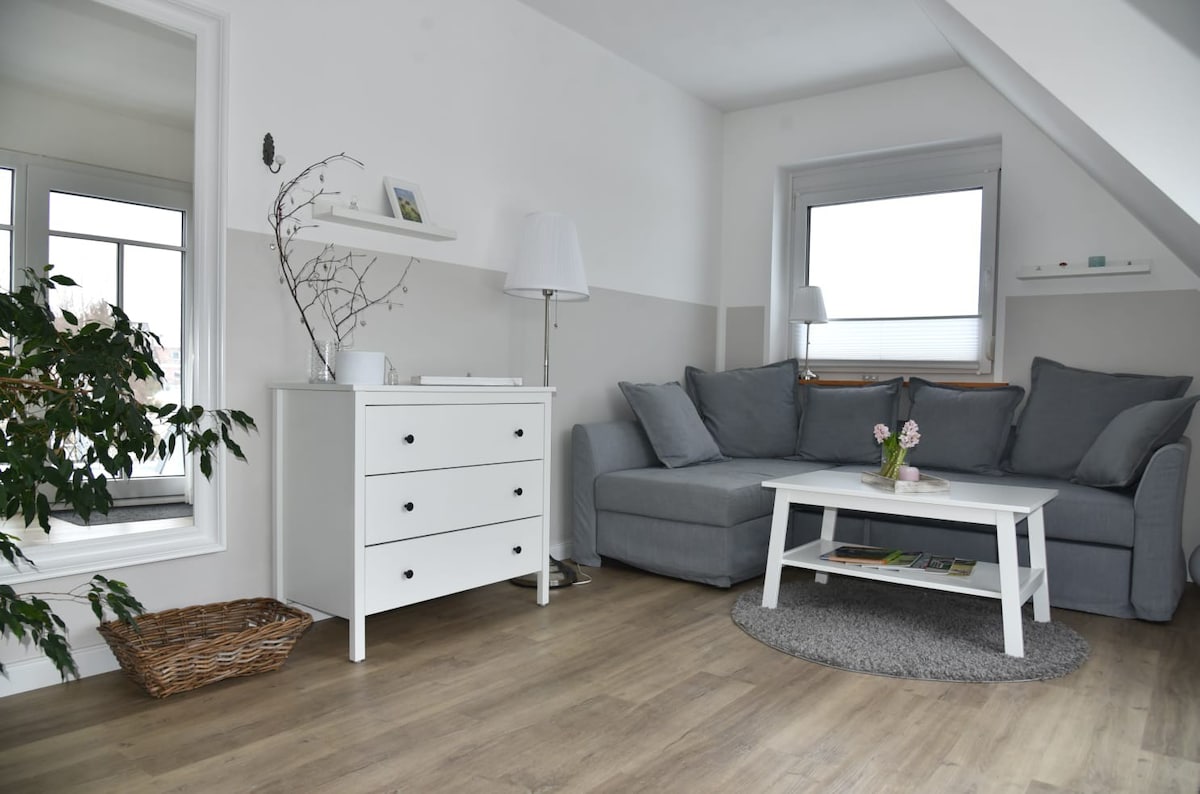 Ifulethi lakhiwa entwasahlobo ka-2022 epulazini lasemaphandleni le-Gasthaus Hoops. Ngezimpelasonto, ifulethi lilungele izivakashi zemigubho yethu. Inamakamelo angu-3 (imibhede emibili engu-2, umbhede owodwa owodwa), igumbi lokugezela, indlu yangasese eyengeziwe nendawo yokuhlala evulekile ene-TV nekhishi elinakho konke. Uvela kuvulande ungabheka ingadi enkulu. Ikakhulukazi ehlobo, izakhiwo zangaphandle zenzeka ngezimpelasonto.