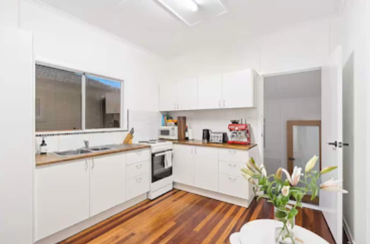 Lesi sitolo esineminyaka engaphezu kwekhulu, esiyingqayizivele nesihle, siyisitudio esikhangayo sezithandani. Igcwele amagugu a-upcycled nezinto zokunethezeka zakudala, ihlanganisa ubuhle nokunethezeka. Iqhele ngebanga elifushane ngezinyawo kumathilomu, ezitolo, emapaki nasebhishi, kanti i-Sandgate Station iqhele ngamamitha angu-700 kuphela (izitobhi ezingu-3 ukuya e-BEC). Isikhumulo Sezindiza Sase-Brisbane siqhele ngemizuzu engu-15 uma uhamba ngemoto kanti i-CBD iqhele ngemizuzu engu-30 uma uhamba ngesitimela. Hambahamba emzileni we-Secret Garden bese ungena endaweni yakho yokuhlala enokuthula, enendawo yokubhukuda ukuze uphole ngalezo zinsuku ezishisayo ezinomswakama.