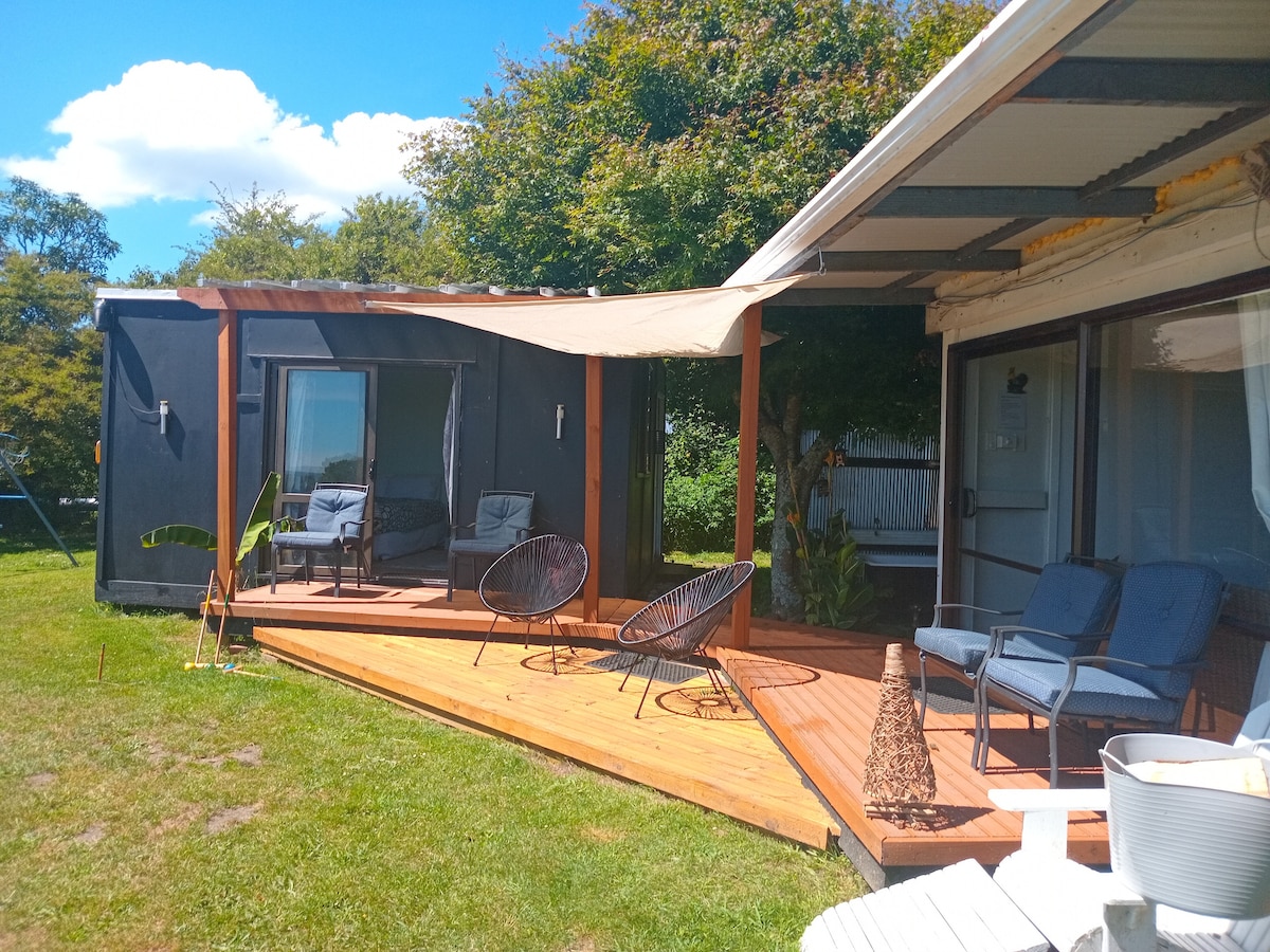 Our wee rustic guesthouse is in Ngongotahā which is 7km's from Rotorua central. Our rustic guesthouse is set in our back garden along with our 6 chooks & our 8 year old Golden Lab Rex 🐶. The space is private and has a double bedroom with a comfy queen bed & basic ensuite. There's a separate lounge with kitchenette & dining space, basic TV & cozy sofa, surrounded by a deck with gas BBQ. We are by no means luxurious, but do guarantee inspiration, character & ample love for our wee rustic home.