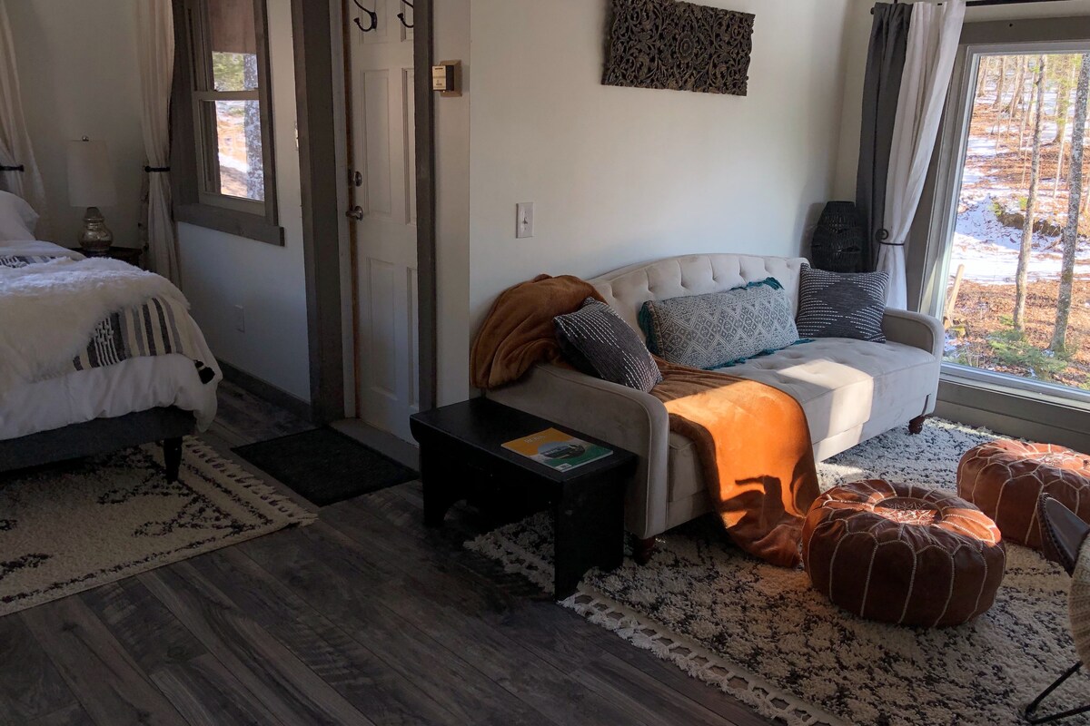 Balekela endlwaneni ethokomele, enothando eseceleni komfudlana ogeleza kancane—lapho uzolala khona ulalelwa umsindo wamanzi ngaphandle kwefasitela lakho bese uvuka ekuseni okuthulile kwase-Vermont. Indlwana, esesigodini esifihlekile enkabeni yeVermont, inikeza indawo yokuhlala enokuthula, ephakathi nemvelo enendawo evulekile, imizila, nesibhakabhaka esimnyama esinezinkanyezi. Kungakhathaliseki ukuthi ulapha ukuze uphumule, uhlole indawo, noma umane nje unciphise ijubane, le yindawo ekumema ukuba uzinze.