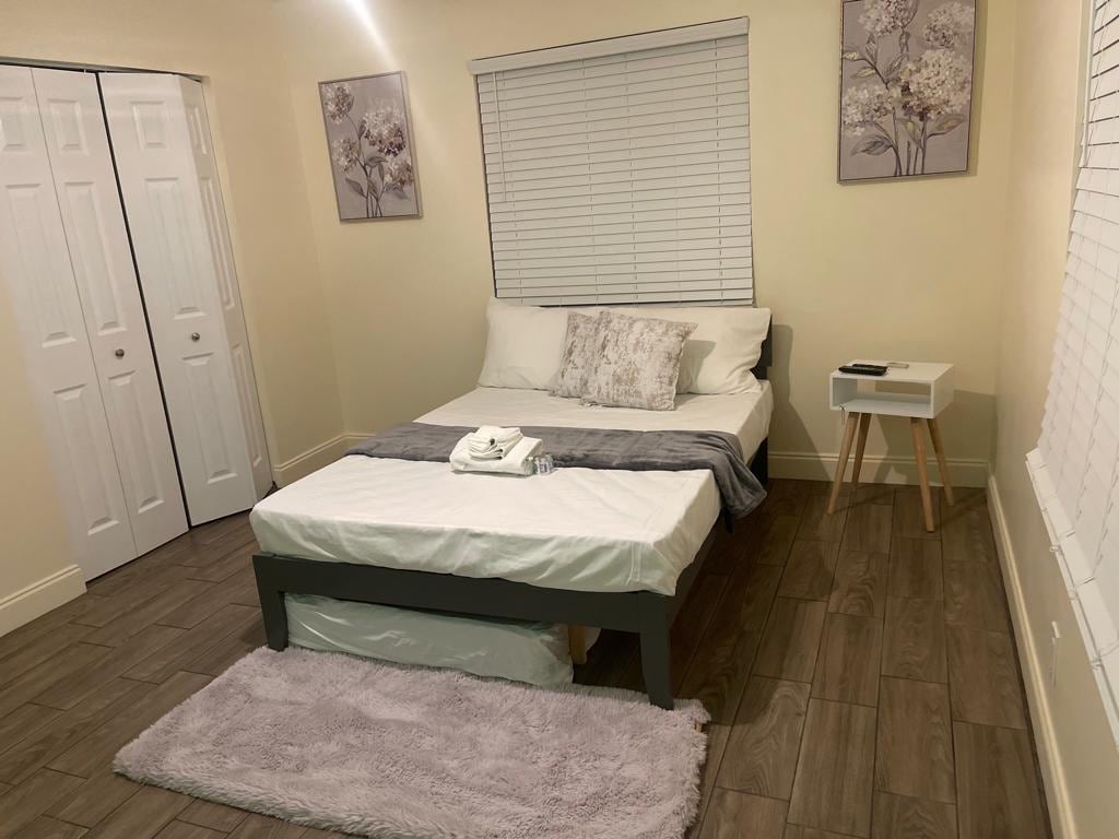 Le ndawo yokuhlala enhle ilungele uhambo njengabantu abashadile noma umuntu ngamunye. Zizwe usekhaya efulethini lethu eliphrayivethi ngokuphelele, endaweni ethulile enakho konke okudingayo ukuze uhlale uphumule. Hlala uxhumene ne-WiFi yamahhala enejubane eliphezulu. Nombhede kasofa othokomele ohlinzeka ngesivakashi sakho esengeziwe. Le ndawo yimizuzu engu-5 ukusuka esikhumulweni sezindiza kanye ne-interstate -95 kanye nemizuzu engu-2 ukusuka ku-turnpike. Imizuzu nje ukusuka edolobheni, isikhungo sokuthenga, ipaki le-haverhill ne-Lion country safary, ibhishi, phakathi kwezinye izindawo