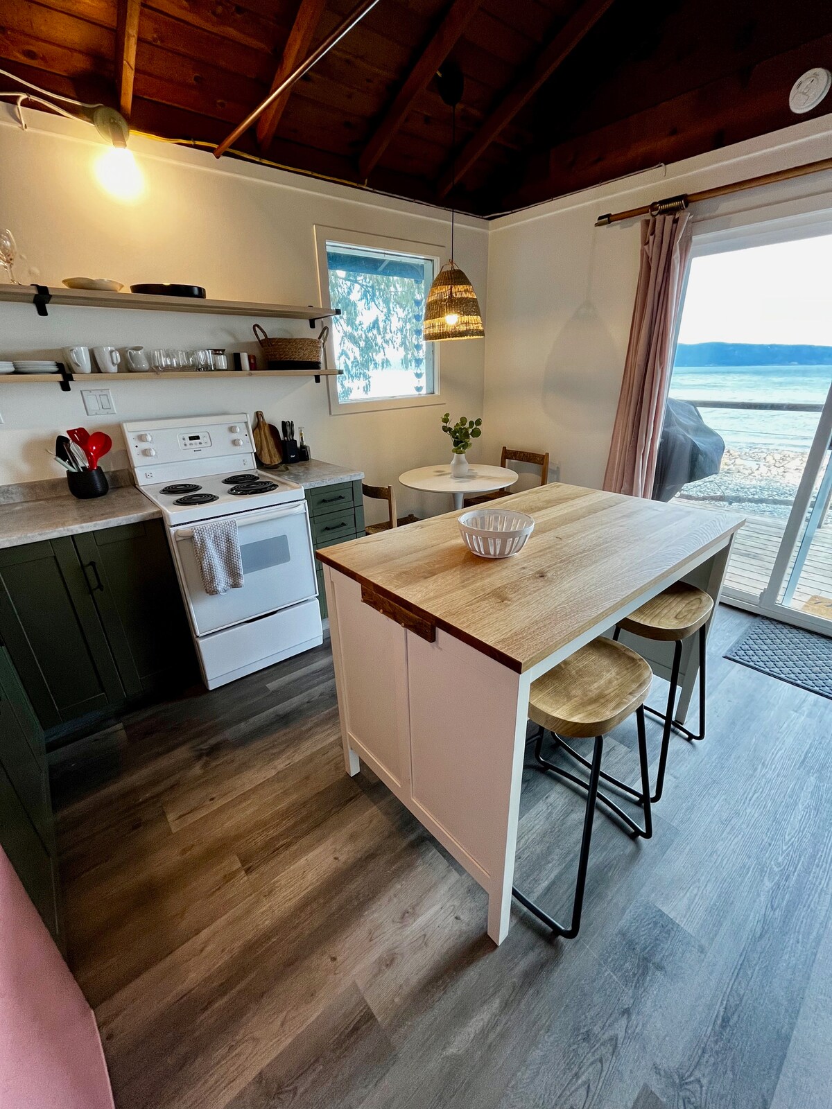 Hamba ngasolwandle, indlu eyakhiwe ngamapulangwe enamagumbi angu-2, ekhanyayo neyimfihlo enendawo yokushisisa, enezindawo ezinhle zokubuka i-Georgia Strait. Le ndawo yokuhlala ebabazekayo engasolwandle inekhishi elinakho konke okudingekayo elinezinto zesimanje, izindawo zokuwasha, kanye ne-spa kanokusho efana neshawa yamatshe amancane. Igumbi lokuphumula elithokomele lidizayinelwe ukuba libukeke kahle ulwandle nezintaba, kube nemisindo yemvelo eyenza kube indawo ekahle kakhulu yokungcebeleka nokuphumula.