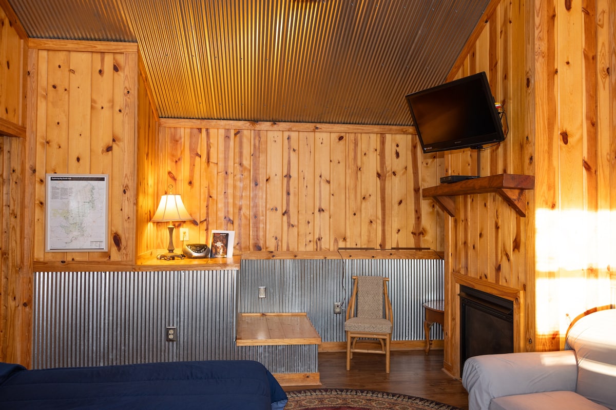 Le ndlu eyakhiwe ngamapulangwe eseceleni, enokuthula ebheke izintaba nechibi itholakala endlini engama-acre angu-50 engasetshenziselwa ukujabulela kwakho: ukuhlola, amavili angu-4 noma ukudoba. Yiba ngaphandle kwe-Rustic oasis ku "The Ridge" emphemeni OMKHULU obheke ichibi futhi uphumule ngaphansi kwesibhakabhaka esivulekile ebusuku!!! Ukubukeka okuhle! Izilwane ezifuywayo zamukelekile :) futhi imali engu- $ 25 yesilwane esifuywayo izokhokhiswa uma unezilwane ezifuywayo ezingu-2, uma uletha izilwane ezifuywayo ezingu-3 kuzoba nemali engu- $ 50 yesilwane esifuywayo.