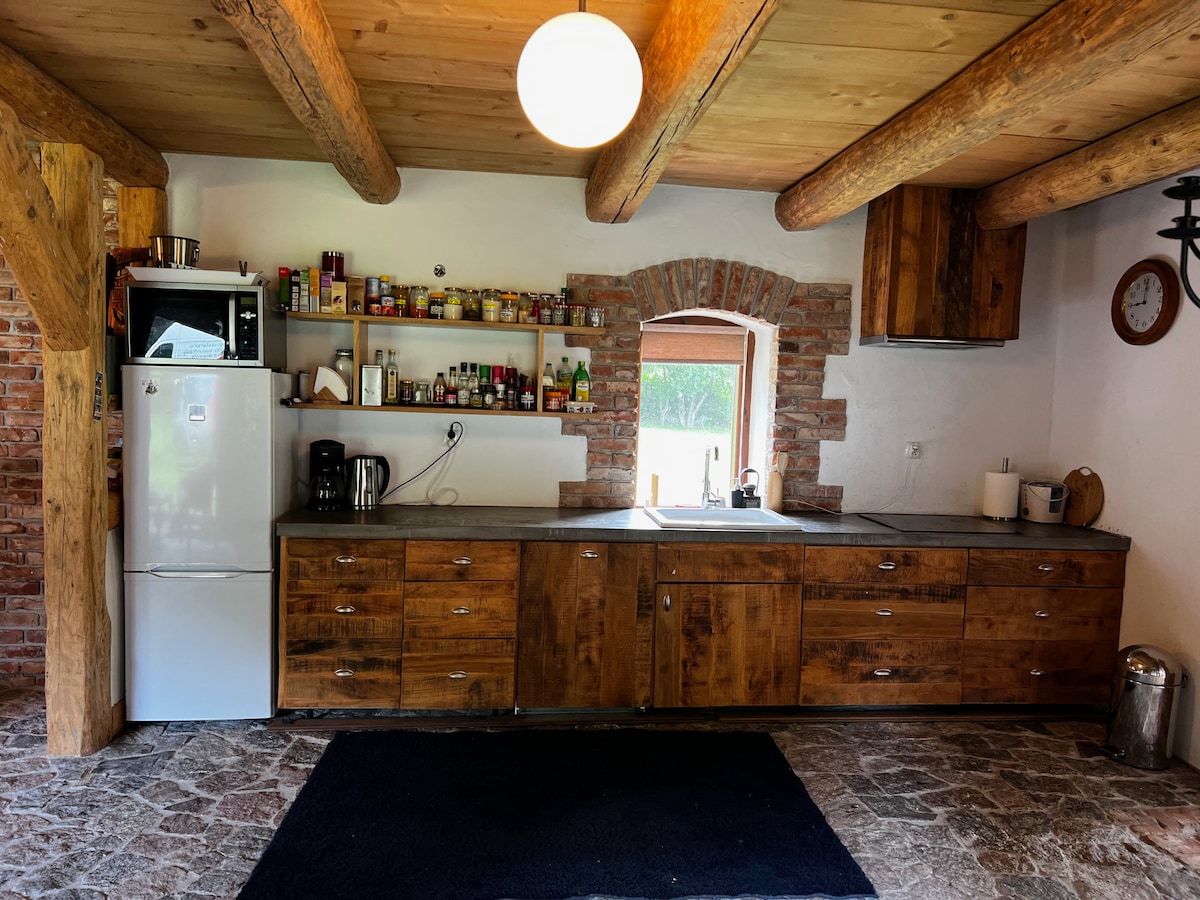 Discover this enchanting house in the heart of Mazury - surrounded by lush forests and located by its own lake. This nostalgic home was once a farmhouse. On the first floor, you'll find two spacious bedrooms with balconies and a lovely bathroom. The kitchen features a large dining table as its centerpiece. Relax on the covered veranda or cozy up by the fireplace as the weather gets colder. Take a swim, make a campfire... We welcome you to escape the daily grind and recharge at this unique place.
