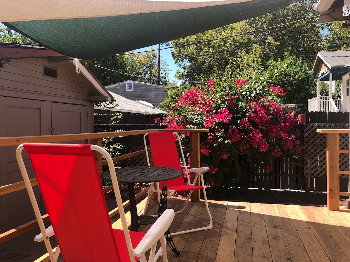Le ndlu yezivakashi yesitudiyo evulekile ilungele uhambo olude lomuntu oyedwa noma ukuhlala kweqembu elifushane. Ihlukaniswe ngasese ngemuva kwendawo yethu enendawo yayo yangaphandle ephrayivethi. Indawo yethu itholakala emizuzwini embalwa ukusuka e-Downtown nase-West Sacramento futhi kulula ukungena kokubili emgwaqweni omkhulu nojantshi olula. Futhi eduze kakhulu ne-Land Park ne-Curtis Park. Ayikho indawo yokupaka eyabelwe kodwa indawo yokupaka yasemgwaqweni yamahhala iyatholakala 24/7, ayikho imvume edingekayo.