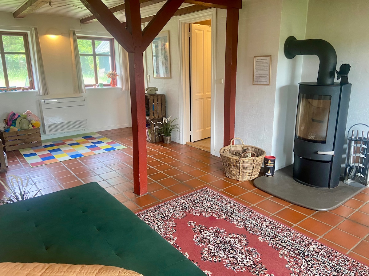 Kuyafana nemvelo, indlu enkulu yokuhlala ehlala kahle ehlala kahle endaweni enokuthula. Ingabe niyakuthanda ukuya ebhishi, ehlathini, ukuphila kweholide, i-MTB, igalofu, i-padel, i-Fårup Sommerland noma uhambo olude kuyo yonke into? Kukhona okuthile kwabo bonke lapha. Indlu igcinwe ngesitayela sayo sokuqala nendawo nomoya weholide elinemindeni engafika kwemibili (izivakashi eziyi-9). Kungakhathaliseki ukuthi isimo sezulu sinjani, ungajabulela isisefo esingaphandle, indawo yokugeza yasendle, ubhavu wamanzi abandayo kanye ne-sauna. Indlu, isakhiwo esincane kanye nendawo yokupaka imoto kudala indawo yokuhlala, futhi kuhlanganiswe yindawo yokuhlala eyenziwe ngokhuni kanye nendawo encane enotshani enethuba lokwenza imisebenzi ehlukahlukene yangaphandle.