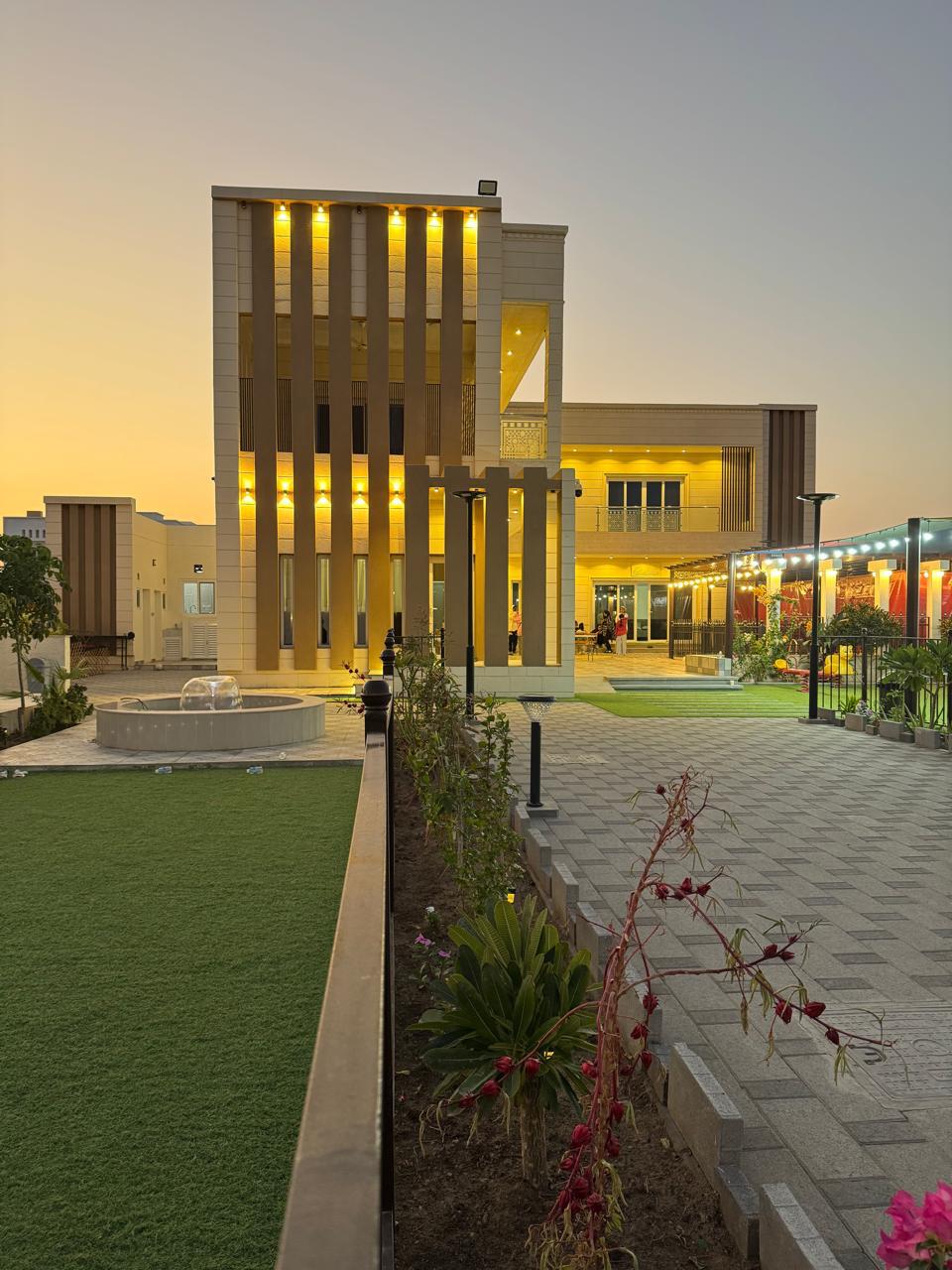 استراحة فخمة وعصرية بنظام فندقي وأثاث أوربي متطور ومبنى بتصميم عصري حدبث وموقعه في مركز المدينة متميزة بإطلالة وجلسات شاي تطل على حديقة واسعة بمسطحات خضراء وزهور وورد ذات ممرات يتوسطها نوافير مائية تريح العين والعقل وتزيد الاسترخاء والاستجمام الصحي وكذلك صالة جيم وصالة استضافة تكفي ل 50 شخص موقعها في قلب مدينة صحار مباشرة على الطريق الرئيسي للمدينة جنب سوق بازار السياحي ومقابل السوق الصيني وقريب من مراكز التسوق والمطاعم والمقاهي والحدائق والمستشفيات الحكومية والخاصة وقريبة من مواقع المهرجانات .