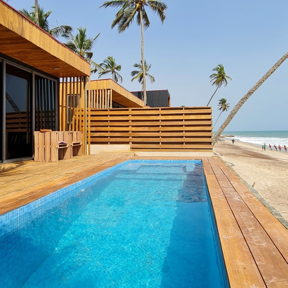 Izindlu zethu ezakhiwe ngamapulangwe zikanokusho ''A”e-Aburi ziyizindlu ezakhiwe ngamapulangwe ezisemaphethelweni e-Accra futhi ziqhele ngamakhilomitha angu-25 kuphela ukusuka esikhumulweni sezindiza. Indawo yethu eyingqayizivele inesitayela ngokwayo; entabeni ebheke idolobha. Inikeza ukubukeka okuhle ebusuku usembhedeni wakho nokubukeka okumangalisayo kwasemini kwezintaba eziluhlaza nezigodi. Ukubuka idolobha ebusuku endaweni yakho yokubhukuda ephrayivethi engenamkhawulo kungokokuzithokozisa okujabulisayo okuncoma isimo sethu sothando. Jabulela ukuvakasha okumangalisayo, ngemidlalo engu-15+ noma ukuhamba ngezinyawo.