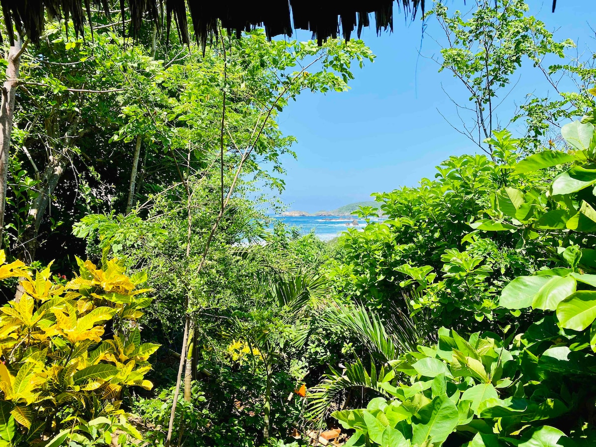 Ukuvuka kule ndawo kuyiphupho! Indlu isogwini lolwandle ukuze ujabulele ukushona kwelanga okuhle kakhulu nsuku zonke. Inamazinga amabili. ikamelo lokulala liphezulu kanye nendawo yokusebenzela (i-Starlink) nama-hammock okuphumula. Uphahla luyi-palapa enhle kakhulu. Indlu inendawo yokubhukuda encane ephrayivethi lapho ungajabulela khona ukubuka okungcono kakhulu e-Playa Mermejita. Indlu ivulekele kakhulu ukujabulela ukusha komoya nezindawo ezinhle kakhulu.
