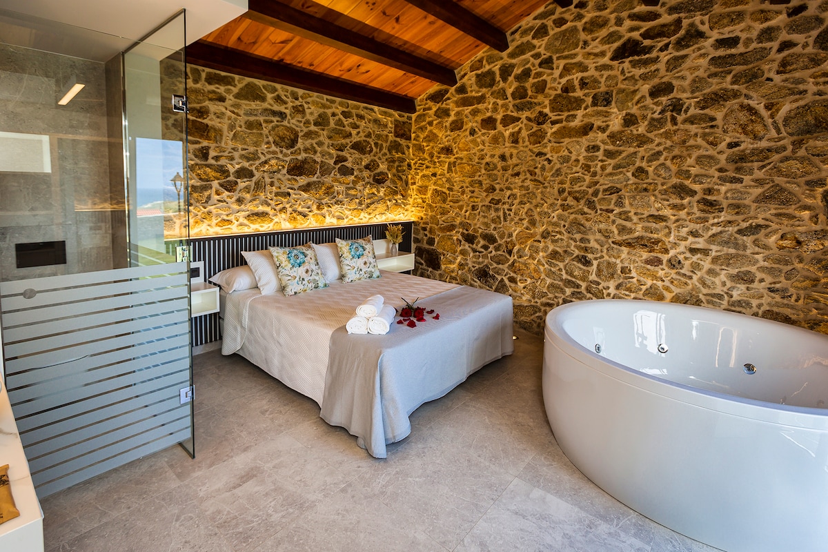 Sea no Camiño. Terrace, bathtub with ocean view.