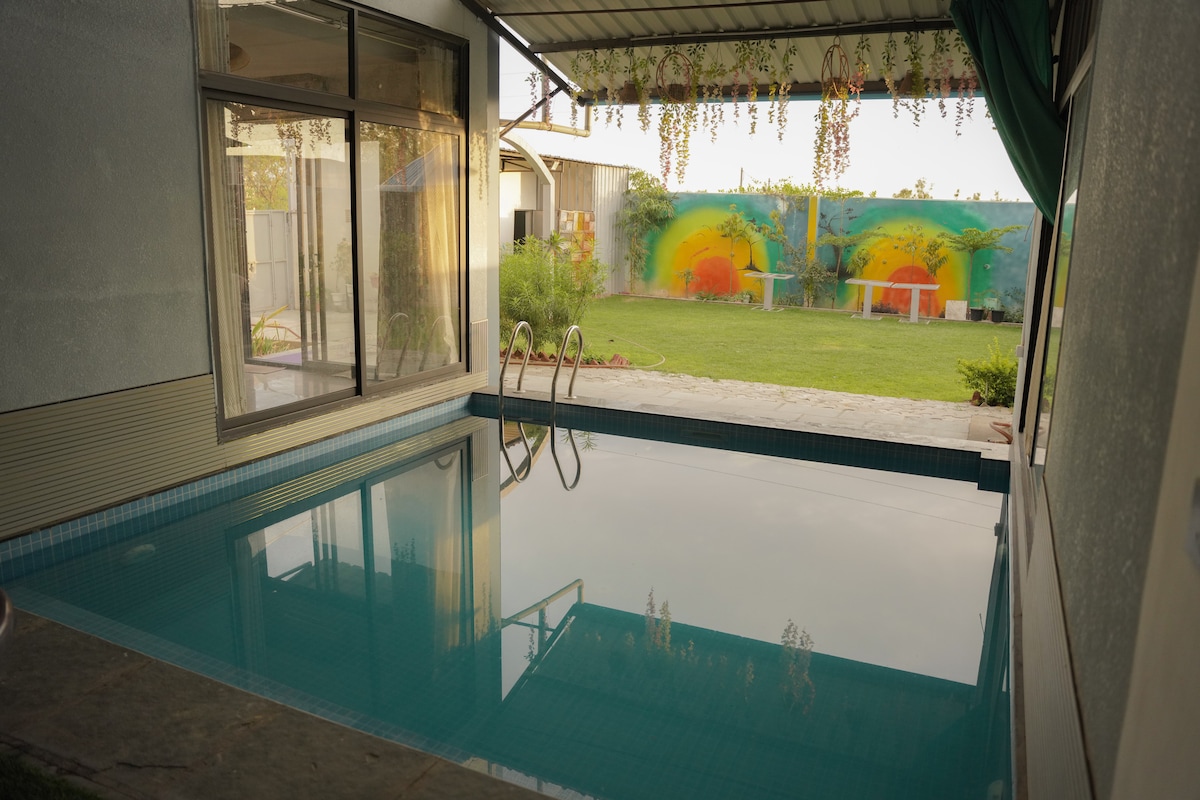 Indawo yokuhlala ephezulu yasepulazini|indawo yokubhukuda | LeafHaven Jaipur