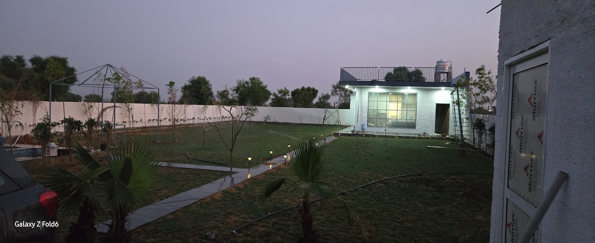 ONLY FOR FAMILIES OR COUPLES. STAGS ARE NOT ALLOWED. Spread over 2.5 Acres of land, this is a perfect getaway for peace and a nature-loving person, away from the hustle & bustle of the city. A beautiful sunset while you dip into the pool with hundreds of different birds chirping around you for a magnificent experience. This isolated place is only 50-minute drive from Jaipur Central. We also accept pets. Only 60 kms from Khatu Shyam ji temple.