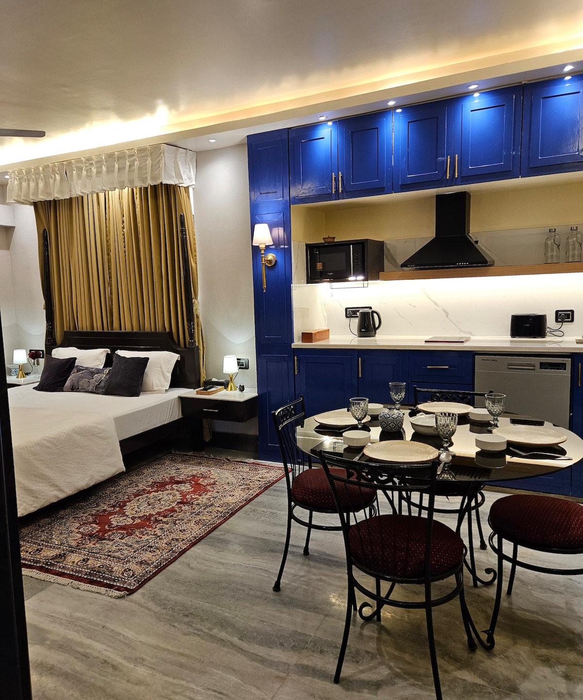 Hlala ekamelweni lethu elivulekile elinamakamelo angu-3, ifulethi elingamamitha-skwele angu-1600 maphakathi ne-Patna. Jabulela idizayini yesimanje yase-Europe, ithala elikhulu elinezindawo zedolobha, nendawo enkulu yomsebenzi nokungcebeleka. Amasevisi ahlanganisa i-smart TV, i-WiFi, i-Bathtub, amakamelo okulala e-AC anemibhede ethokomele, Ikhishi, Izindawo zokuwasha, i-Kone lift nokupaka! Ithala lethu elisesitezi sesine elixhunywe nefulethi linikeza izindawo ezinhle zesibhakabhaka sika-Patna. Ilungele izivakashi ezinokuqonda ezifuna ukunethezeka!