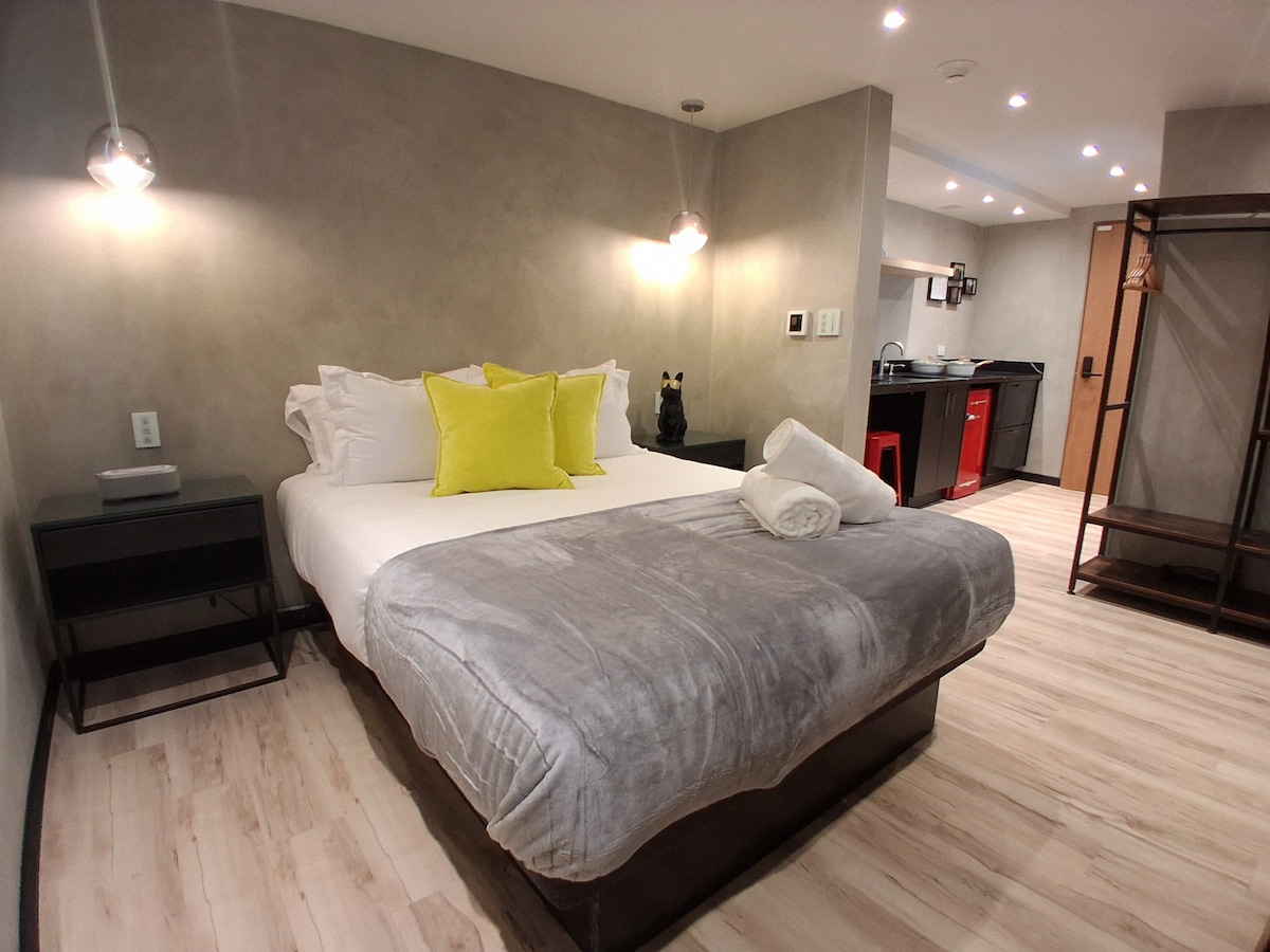 Casa Musa Suite 9 - Rap Music This stylish suite is centrally located in La Placita-where everyone wants to be. Casa Musa is a theme Boutique Hotel honoring our diverse musical culture. This suite's theme is inspired by the bold flow and streetwise energy of Puerto Rican rap, this master deluxe suite offers a queen bed, full kitchen, living room, and private bathroom. Elegant details and warm lighting, create a chic space to relax and feel uplifted.