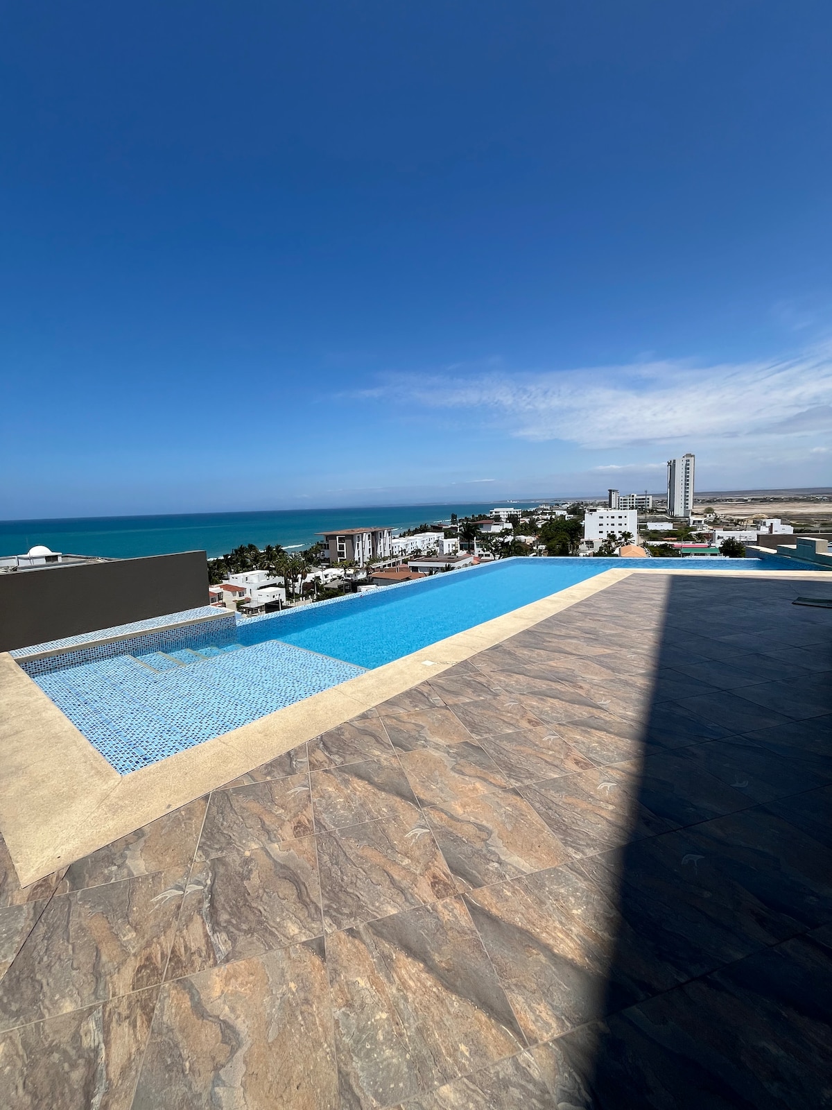 PB Penthouse experiencia exclusiva frente al mar si buscas elegancia, relajación y seguridad a 300mts de la playa con vista panorámica. Incluye: >Jacuzzi privado panorámico >Rooftop con vista al mar >4 cuartos con A/C, baño y cortina >Parqueo privado para 1 vehículo (calle abierta de parqueos y otros con costo) >Piscina, Guardia 24/7, ascensor, agua caliente >Wifi veloz , Netflix, Youtube >Refri, cocina, lavadora >Cafetera, microondas, airfryer, licuadora >Toallas, ropa de cama y papel