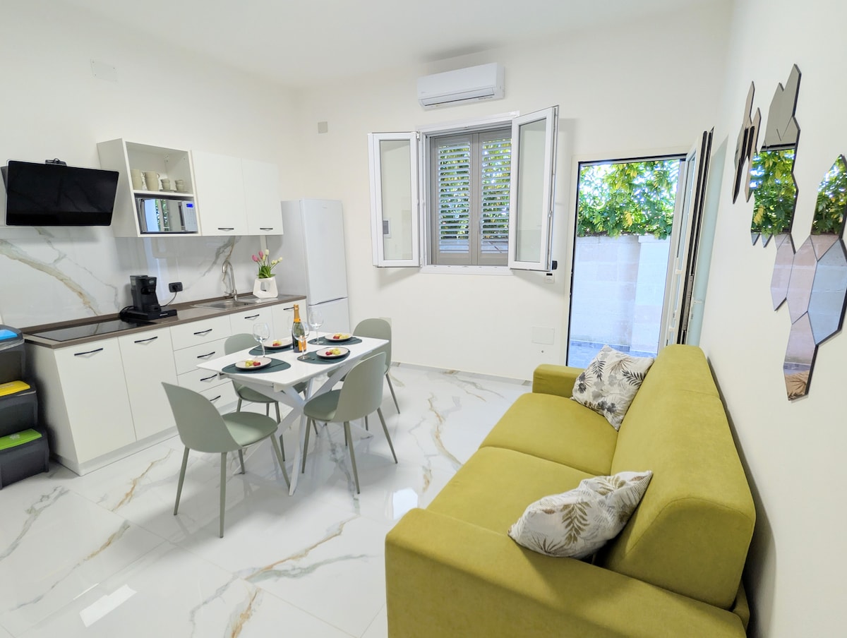 Located within a historic Salento palazzo, this independent and comfortable ground-floor home offers an authentic experience in the heart of southern Italy. A spacious terrace, equipped with a hot tub and solarium, provides the perfect setting for moments of true relaxation. The outdoor areas â including a private courtyard and panoramic terraces â are ideal for al fresco dining and enjoying the warm Salento atmosphere.