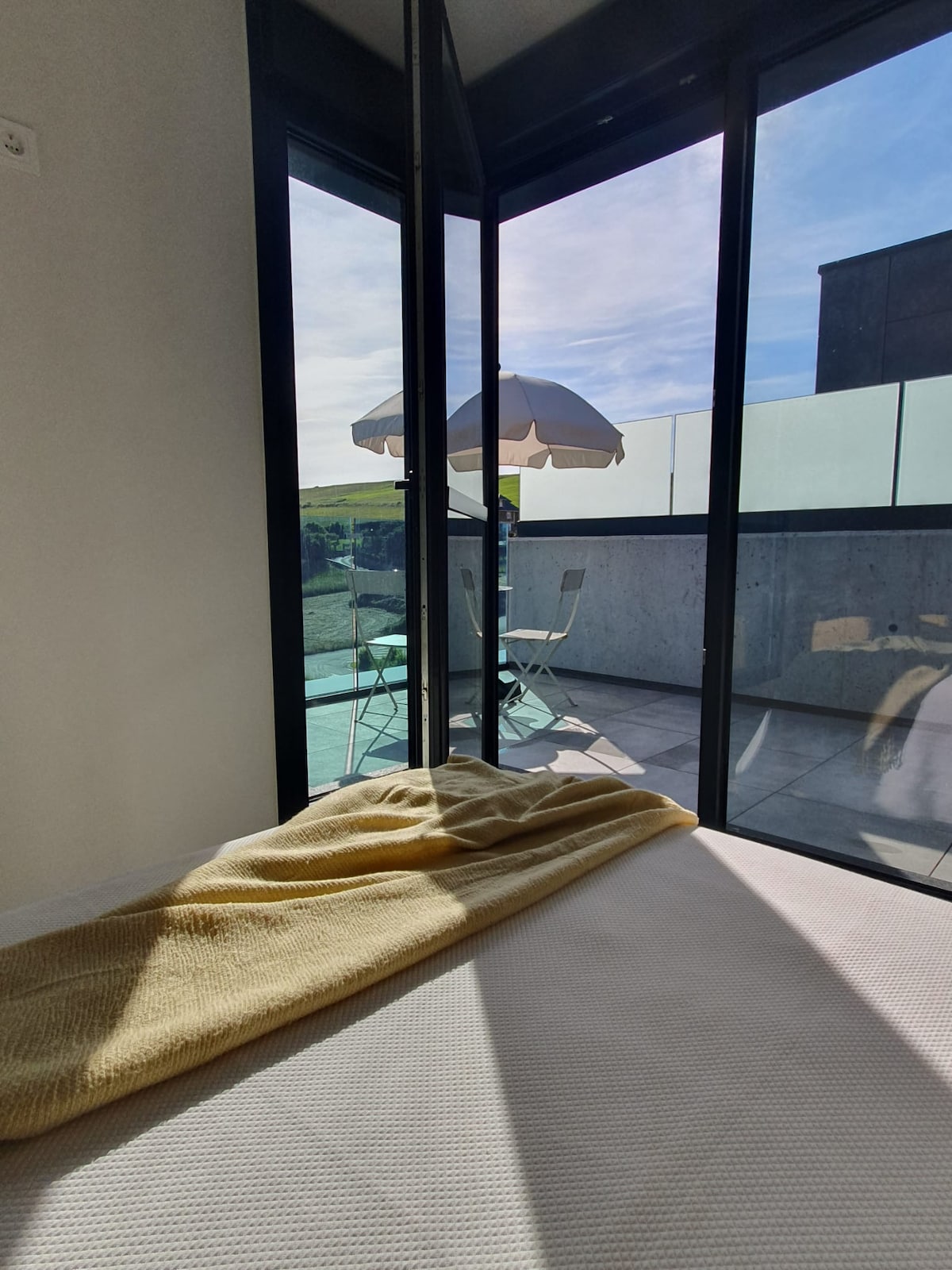 Habitación independizada con entrada independiente y terraza privada . Ubicada cerca de las playas de la zona y con buena comunicación con Santander con parada de autobús a 15 metros ( también bus nocturno el fin de semana ) Acceso individual a la habitación por la terraza privada y sin contacto con los otros huéspedes . La habitación tiene nevera , cafetera y un baño privado. Hay posibilidad de alquiler de garaje ( consultar disponibilidad)