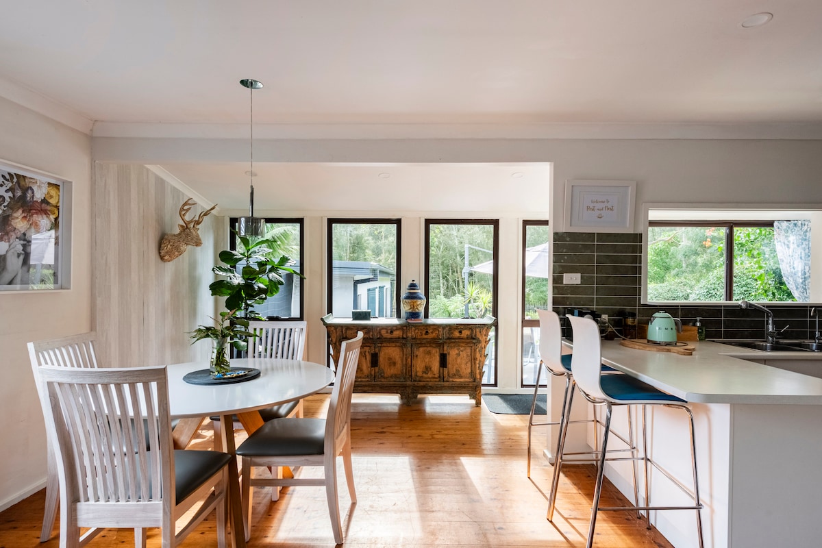 Yizwa ukuphumula okusheshayo kuyilapho uthatha ukubukwa okugudle ugu kule ndawo yokuhlala esesitayeleni, imizuzu engu-90 eningizimu ye-Sydney kanye nokuhamba ngezinyawo okungu-700m ukuya e-Seven Mile Beach. Vula ama-bifolds ukuze uzwe umoya wolwandle futhi wandise indawo uye emphemeni ophangaleleyo. Noma uthokomale ngasendaweni yomlilo ezinyangeni ezibandayo. Ngesidlo sasekuseni nendawo yokuphumula yangaphandle, uzobhujiswa ngezindawo zokuhlangana. I-pootch yakho ingagijima yasendle egcekeni elinotshani, elibiyelwe ngokugcwele, futhi ujabulele isikhathi emabhishi anezinja esifundeni.