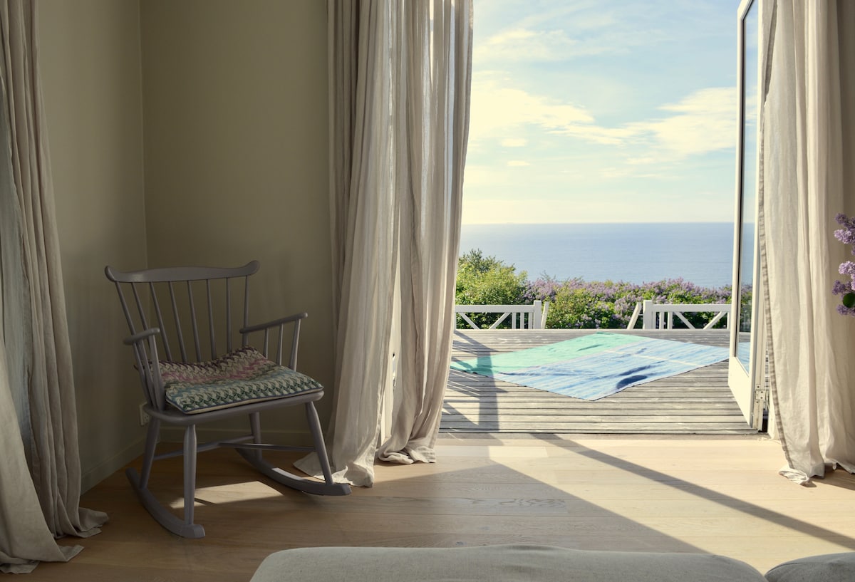 The Seahouse is a historical half-timbered house situated in the charming village of Allinge by the sea and with an exceptional sea view. You will find a lovely beach, only a two-minute walk from the house, and two minutes in the other direction, you will find the harbour and shops. A spa