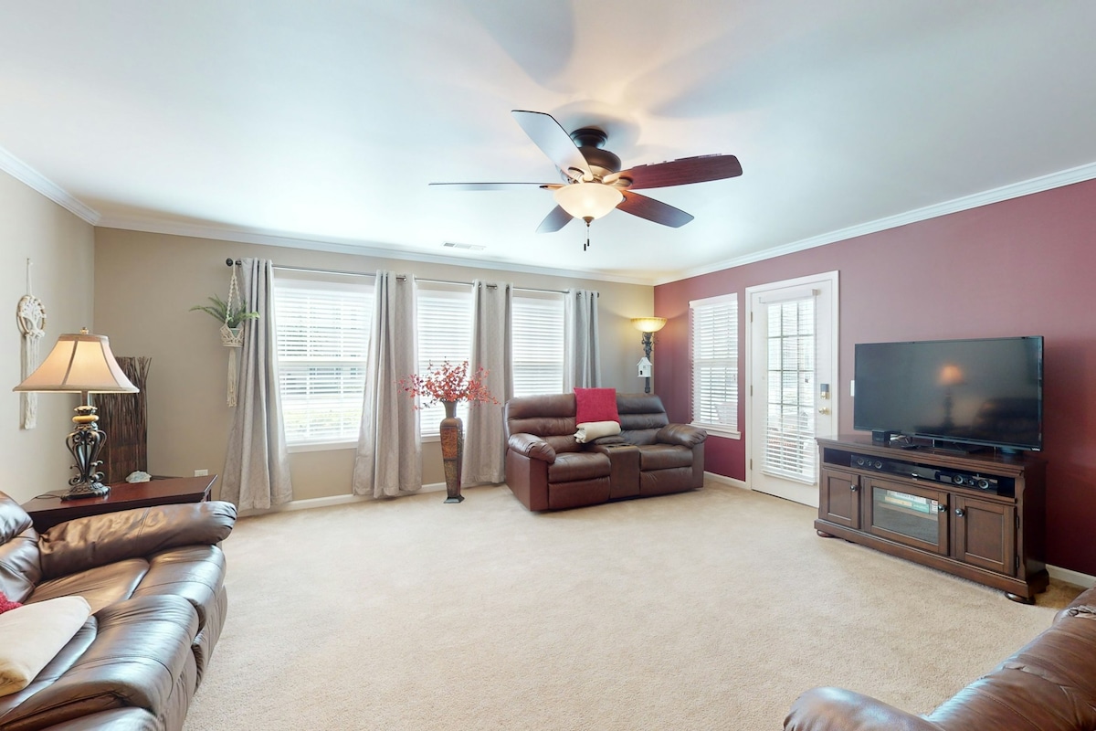 Woza ujabulele inkundla yegalofu elungisiwe futhi ujabulele isiphuzo esihle ngemva kwesiphuzo esiyindilinga e-Palmetto Jacks! Phumula ngokubuka inkundla yegalofu endaweni ekahle. Le yunithi engu-2bed/2bath inamasevisi owadingayo usuku noma iviki. Uhamba ngemoto imizuzu engu-10 ukuya ebhishi, imizuzu engu-35 ukuya e-Myrtle Beach, nehora eliseningizimu ukuya e-Charleston. Indawo yokupheka yasendaweni inikeza ukudla kwasolwandle okusha kunakho konke ezweni, ukudla okumangalisayo kwaseningizimu, futhi kuhlale kuneningizimu ye-BBQ! *Izithuthuthu azivunyelwe endlini.