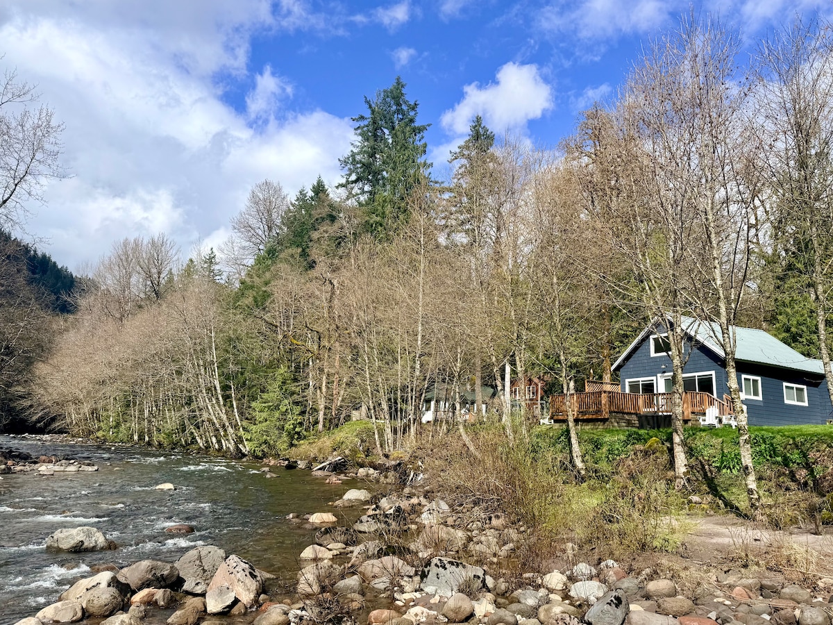 Le ndlu eyakhiwe ngamapulangwe emangalisayo iseduze noMfula i-Sandy onqenqemeni lwe-Mount Hood National Forest. I-oasis yasentabeni enikeza wonke amasevisi asekhaya kodwa esenkabeni yehlathi. Igceke elingemuva elijabulisayo linikeza imifudlana yezinkathi zonyaka ekumemela emizileni namabhishi okuhamba ngezinyawo. Phumula ngasemlilweni othokomele, phumula kubhavu wamanzi ashisayo noma ujabulele imisindo ethokomele evela eMfuleni i-Sandy oseduze. Ukushushuluza eqhweni/ukuhamba eqhweni/ukuhamba ngebhayisikili entabeni/i-kayaking/izimpophoma... inhlanganisela ekahle kakhulu yokuzijabulisa nokuzola.