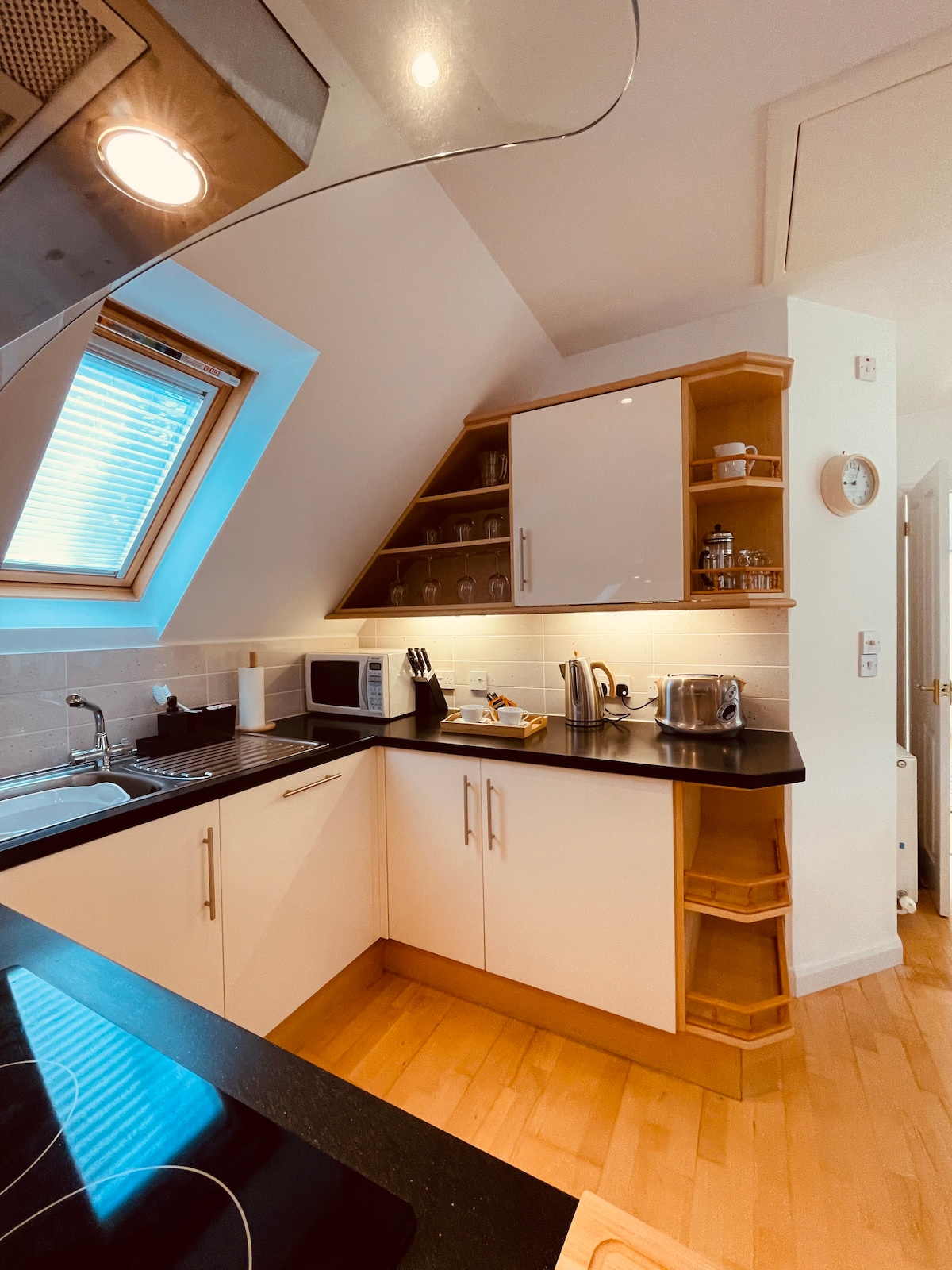 Indawo ezolile, kanokusho ejulile yokuvuselela nokuxhuma kabusha. I-Shippon iyizinqolobane zenkomo eziguqulwe ngokucophelela ezinezitezi ezishisayo, ezipholishiwe eziphathekayo, ezigobile ngobunono izindonga eziluhlaza ezijulile, ikhishi elakhiwe ngesandla, izindawo zokufunda ezikhanyiswe ngemfudumalo, nezinto zemvelo. Izingubo ze-Woollen, usofa wezinyosi, i-antique Scandinavia log burner, umbhede olingana nenkosi enelineni lase-France & phansi, ishawa yempophoma, namathawula athambile. I-Devon hamlet yethu yokulala ikhanya kuphela ngezinkanyezi ebusuku. Ungase ulale kangcono kunalokho onakho eminyakeni eminingi.