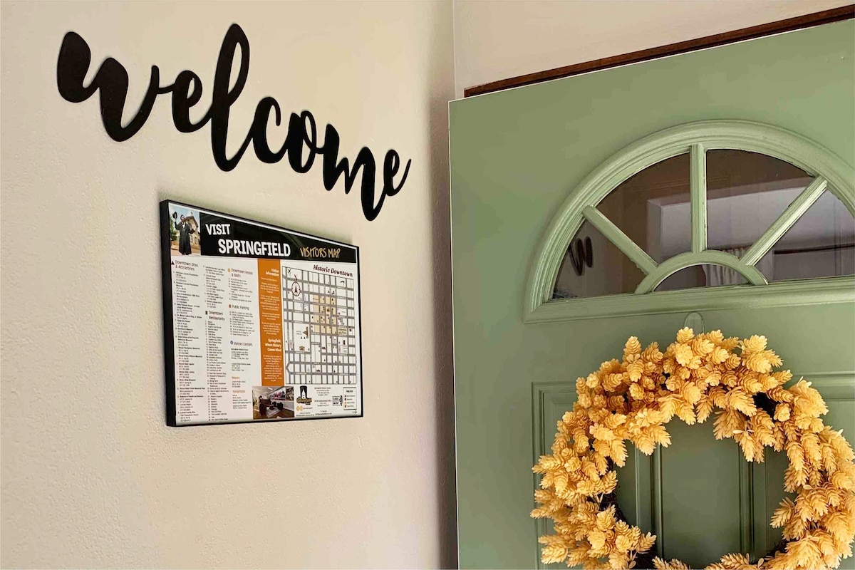 Ikhaya elingamamitha-skwele angu-1200 liyindawo ekahle yokuvakasha yezithandani, umndeni omncane, ukuhlala kwebhizinisi nokuqasha kwesikhathi eside. Itholakala endaweni ethulile nenokuthula, ikhaya lethu eligqugquzelwe i-Lincoln linikeza ukusondelana: I-Scheels + Sports Complex - 1.2 miles noma imizuzu engu-4 Izibhedlela – amamayela angu-4 noma imizuzu engu-10 Isikhungo sedolobha – amamayela angu-3 noma imizuzu engu-10 I-Fairgrounds – amamayela angu-6 noma imizuzu engu-15 I-University of Illinois e-Springfield (UIS) – amamayela angu-4 noma imizuzu engu-10 I-Hyvee Grocery – imayela elilodwa noma imizuzu engu-3