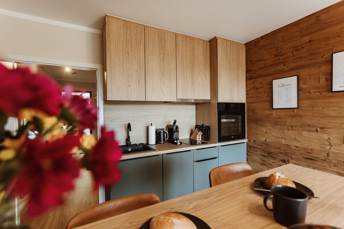 3 Etagen mit Sauna, Wellness & Kamin – mitten in den Bergen! Platz für 8 Gäste (optional 10), dazu 2 luxuriöse Bäder, eine offene Küche mit Kamin und ein Wohnzimmer mit Chillout-Area, TV & PlayStation. Im Keller: Sauna mit LED-Licht & Relax-Raum mit Bar. MTB-Fans finden Platz zum Schrauben, Akkus laden & Räder unterstellen. Balkon/Terrasse mit Grill & 2 Stellplätze direkt vor der Tür. Perfekt für Erholung & Abenteuer!