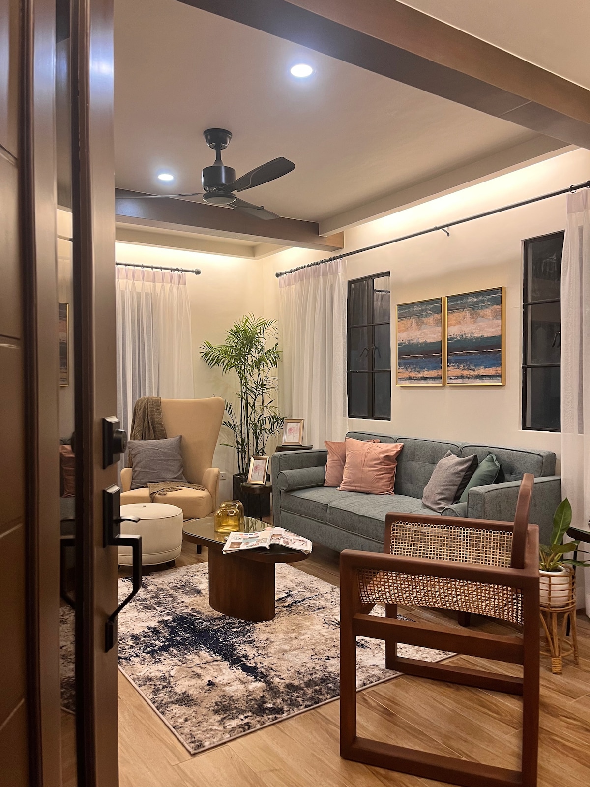 Ikhaya elithokomele elinezimboni elinemininingwane ecatshangwe kahle — lilungele izivakashi, ama-balikbayan, imibhangqwana, izivakashi zasekhaya, nanoma ubani ofuna ukuthula nobumfihlo. Jabulela ikhishi elinakho konke, i-Netflix, i-Wi-Fi esheshayo, indawo yokuhlala ethokomele, nengadi ene-swing. Imizuzu nje ukusuka e-Iloilo City, kodwa kunokuthula ngokwanele ukuba uzizwe njengendawo yokuvakasha yangempela. Woza uhlale lapho ungaphumula khona, uvuseleleke, futhi ube khona. Sibungaze abaningi — futhi bayaqhubeka bebuya ngenxa yalokho “ekugcineni, ngiyakwazi ukuphinde ngiphefumule”.