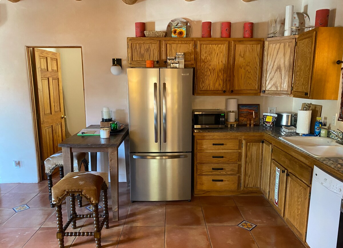 Ifulethi elisanda kulungiswa eliseduze ne-St Francis Dr, imizuzu engu-5 kuphela ukuhamba ngemoto noma uhambe imizuzu engu-20 ukuya edolobheni! Isitezi saphansi, igceke elingemuva eliphrayivethi elinendawo yokubuka izintaba, ukupaka okulula. Iseduze kakhulu ne-Georgia O'Keeffe Museum, i-River Trails, i-Railyard Art District, ne-Santa Fe Plaza. Siyaziqhenya ngokugcina le yunithi ye-luxe ingabizi futhi ihlanzekile ezivakashini zethu. Kungakhathaliseki ukuthi uza ngezobuciko, imicimbi yamasiko, isimo sezulu esomile, iziphethu ezishisayo, ukudoba, ukushushuluza noma ukuhamba ngezinyawo, uzothola okuthile okusha e-Santa Fe eneminyaka engu-400+ ubudala!