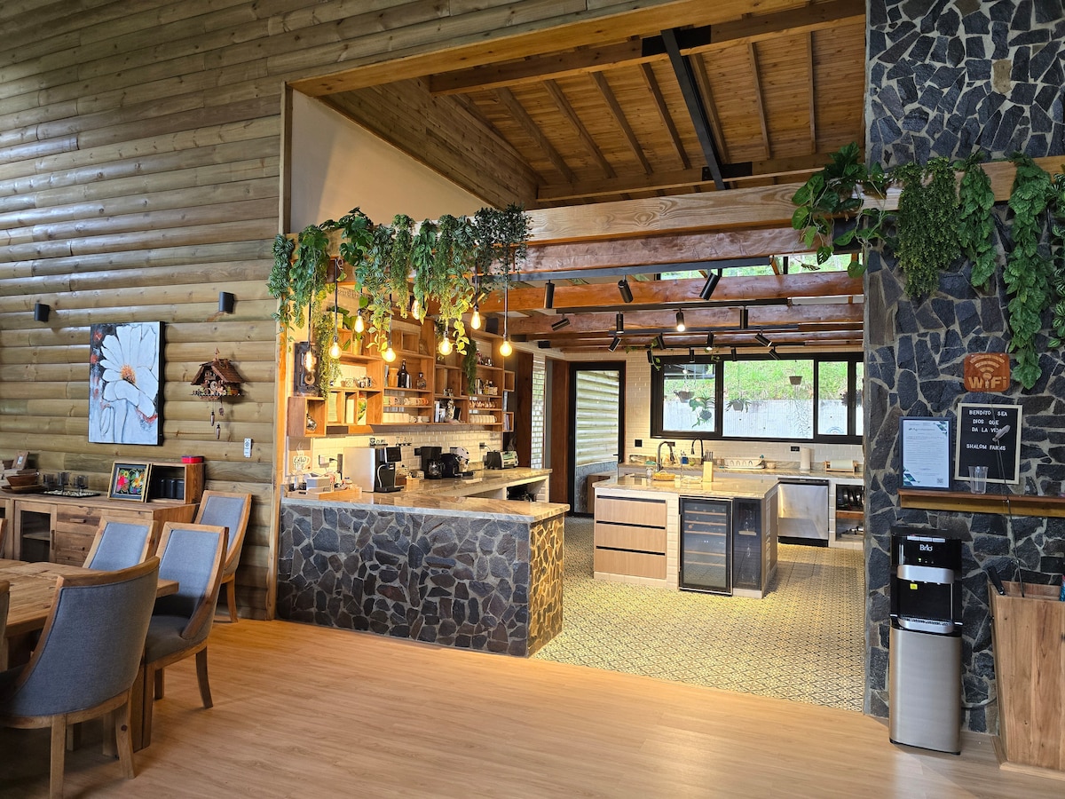 Umthamo wabantu abangu-32 - Phumula nawo wonke umndeni nabangane kule ndlu ethokomele epulazini lezinto zemvelo elinezilwane, izitshalo, ukudoba i-tilapia, ikhofi, imifula, sinendawo yokubhukuda eshiswayo, ithala elinophahla elingamamitha angu-120 ukuze nigubhe izikhathi zenu ezikhethekile.