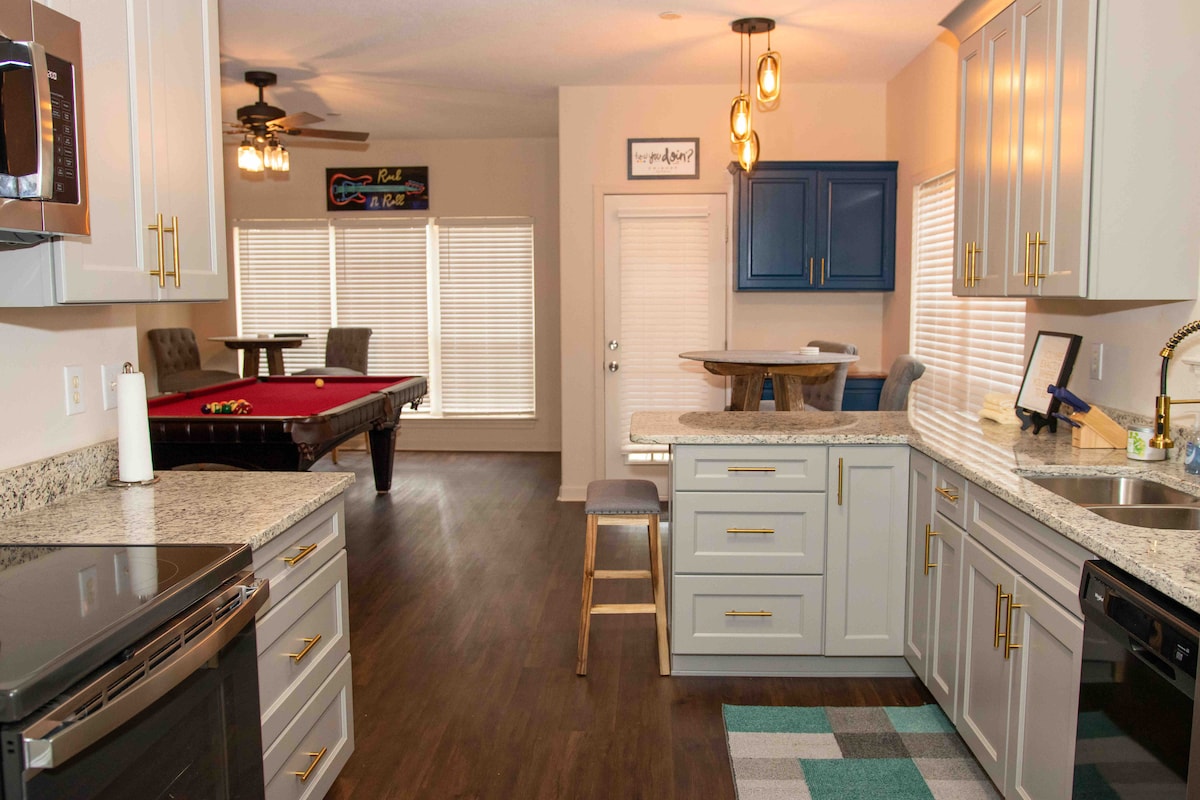 Leli kamelo lokulala elingu-3, indlu yezitini yegumbi lokugezela engu-2 inomklamo osesitayeleni, okulula, futhi wesimanje ogcwele ukunethezeka. Indawo ifanelekile - ngaphesheya komgwaqo kusuka e-Azalea City Golf Course, amamayela angu-3 ukusuka e-Mobile Tennis Center nasepaki likaMasipala, futhi ngaphansi kwemayela ukusuka e-University of South Alabama. Leli khaya lilungele abahlanganyeli bomqhudelwano wethenisi, izivakashi zaseNyuvesi, nabadlali begalofu. Ngemibhede ethokomele, amalineni athambile, nezinto ezibalulekile ezinikeziwe, uqinisekile ukuthi uhlala kamnandi futhi unesidingo!