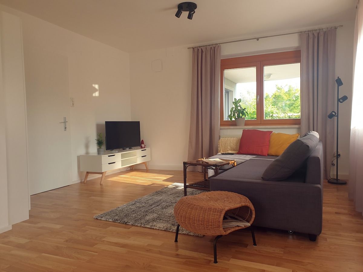 Ifulethi lesimanje elingu-75 m² liphakathi ne-Wels endaweni ethulile futhi lingahlalisa abantu abangaba ngu-4. Ngaphezu kwalokho, kunendawo yokupaka yamahhala egaraji elisendlini. Okuzungezile:* 1 imiz edolobheni 1 imiz i-Messegelände Wels 1 imiz masonto onke/abalimi emakethe (Wed. and Sat.) Umzuzu owodwa Qala ukugijima ku-Traun 1 imiz Tennis-, Fitnesscenter, Kletterhalle 1 imiz gastronomy 1 amaminithi esitolo sokudla 2 imiz Tierpark Wels 10 imiz Bahnhof Wels *(ukucabangela isikhathi sokuhamba)