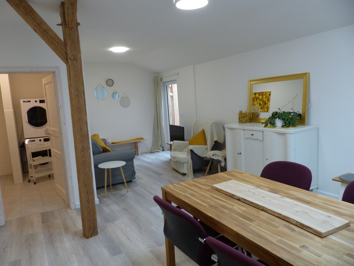 Ifulethi likumema ukuba uhlale ngisho nasesimweni sezulu esivamile sase-North German (esingcolile). Ilungiswe ngamandla ngo-2025 futhi inomqondo wokufudumeza nogesi ongalimazi imvelo. Ifulethi elinamakamelo angu-2 nendawo yokuhlala evulekile nendawo yokudlela isesitezi sesibili, linikeza indawo eyanele yabantu abangu-4. Itholakala endaweni yasemaphandleni ekumema ukuba ujabulele futhi uhambe ngezinyawo kodwa isendaweni emaphakathi kakhulu.