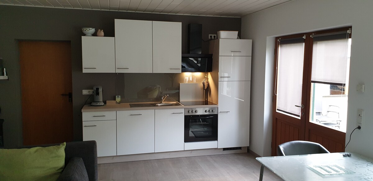 Ifulethi elithokomele, elithulile linefenisha enothando oluningi. Ifulethi elithokomele linekhishi elinakho konke, igumbi lokugezela elisha, elihle nelokuphumula elivulekile nekamelo lokulala elinebhalkoni ebheke eningizimu. Indlu yethu isendaweni ekhula yewayini yase-Mosel-Saar-Ruwer. Thola i-Trier, idolobha elidala kunawo wonke e-Germany, i-Saarburg yezithandani, kanye ne-Luxembourg ukusuka lapha. Ukupaka kanye nesikhala segalaji samabhayisikili nezithuthuthu sikhona.