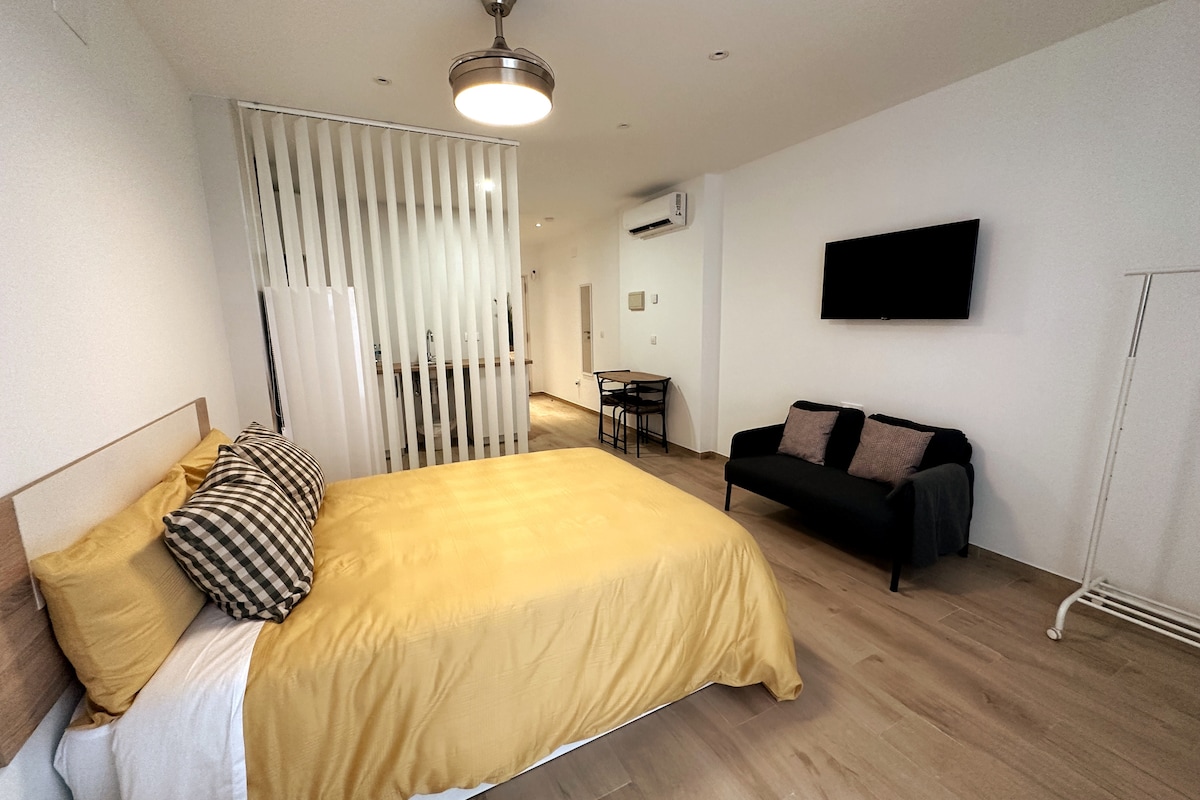 Siyakwamukela efulethini lethu elisha sha, elivulekile, nelesimanje elisendaweni eshintshashintshayo, enamandla namasiko ahlukahlukene e-Ruzafa e-Valencia. Itholakala phambi kwe-Central Park, eyipaki lasedolobheni elimangalisayo, elilungele ukugijima, ukuhamba ngebhayisikili, nokuphumula, enikeza indawo eluhlaza enkabeni yedolobha. Ifulethi lingahlalisa abantu abangaba ngu-4. Inekhishi elinakho konke, umbhede olala abantu ababili, umbhede kasofa, ne-Wi-Fi enejubane eliphezulu. Iklanyelwe ukukunikeza konke ukunethezeka kwasekhaya.