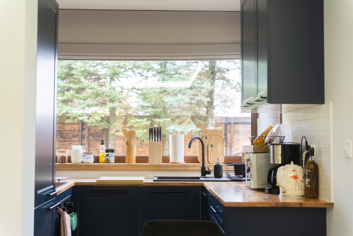 Ngiyakwamukela ku-Cottage House! Zungezwe ama-apula, indlwana iyindawo ekahle yokuphefumula emoyeni, uphumule phakathi nesikhathi futhi ujabulele ukuphila emaphandleni. Hlola imizila yokuhamba nokuhamba ngebhayisikili, edlula endaweni ebabazekayo yamahlathi, amasimu namachibi ase-Wigry National Park. Ngaphakathi endlwaneni, uzothola ingaphakathi elihle nelisondelene, elinobuhle basemaphandleni: indawo evulekile nekhishi elinakho konke, ikamelo lokuphumula elinendawo yomlilo efudumele, amakamelo amabili negumbi lokugezela elineshawa.