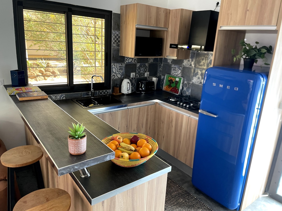 Deda ekuxakekeni kulokhu kuhlala okuyingqayizivele nokuphumuzayo. Izungezwe idolobhana lase-Senegal nokwamukela kwalo izivakashi kanye nemizuzu engu-5 ukuya ebhishi ngezinyawo. Uma udinga i-bungalow yomndeni, vakashela ilinki elandelayo kwenye yama-bungalow ethu https://www.airbnb.com/l/LOltu0pi