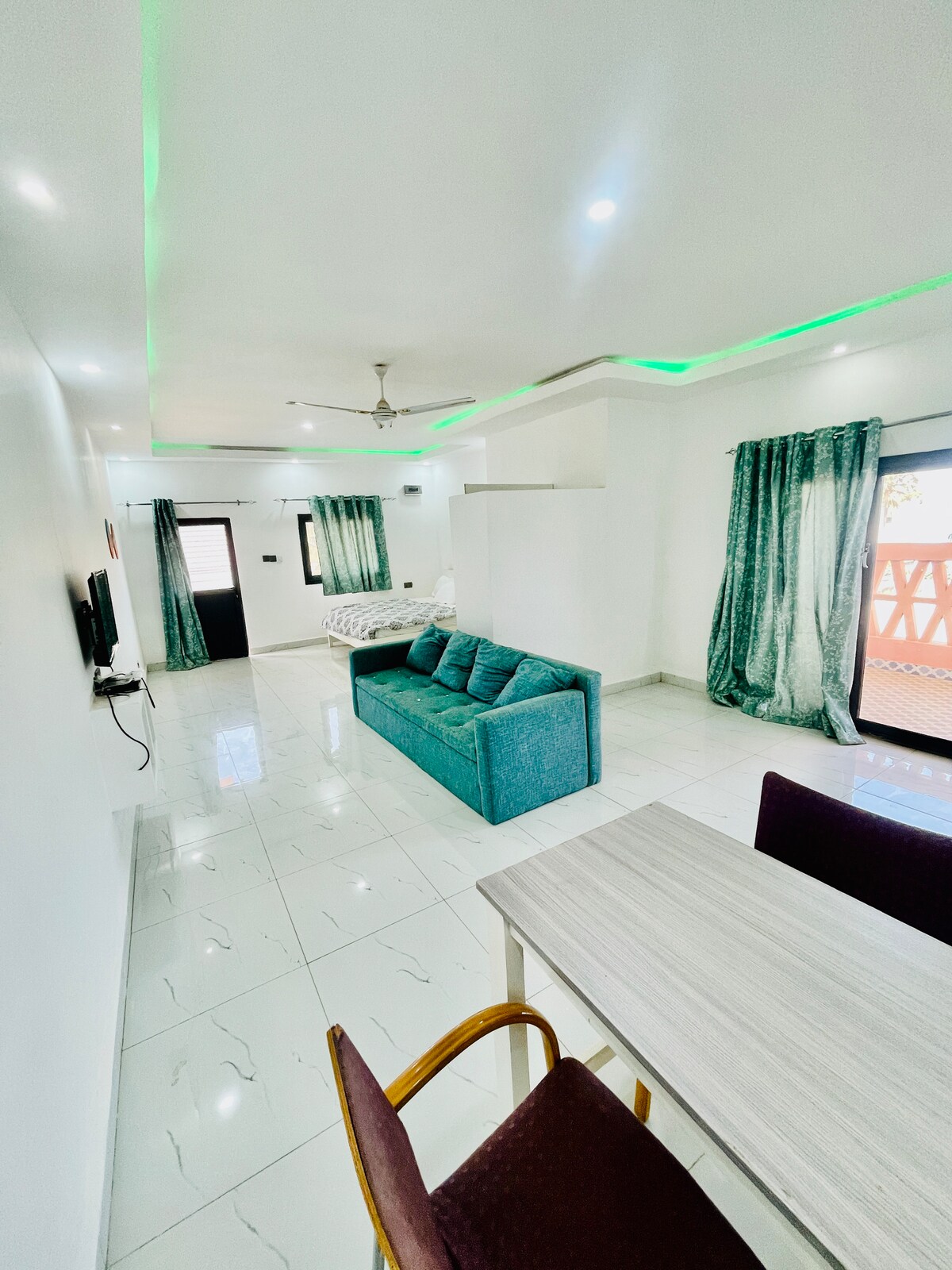 Ifulethi eliyingqayizivele ngaphakathi kwe-Forest View Gambia, elinendawo yokubhukuda eqondile futhi elikhulu kunamanye amafulethi ekamelo elilodwa. I-WiFi, i-airconditioning, i-TV, umshini wokuwasha, namasevisi engeziwe kwenza lokhu kube yisisekelo esihle sokuhlala isikhashana noma isikhathi eside e-Gambia. Indlu yokugezela enegumbi lokugezela eneshawa, ubhavu wokuwasha nethoyilethi. Amasevisi nokuhlanza okubili ngeviki kufakiwe ekuhlaleni kwakho.