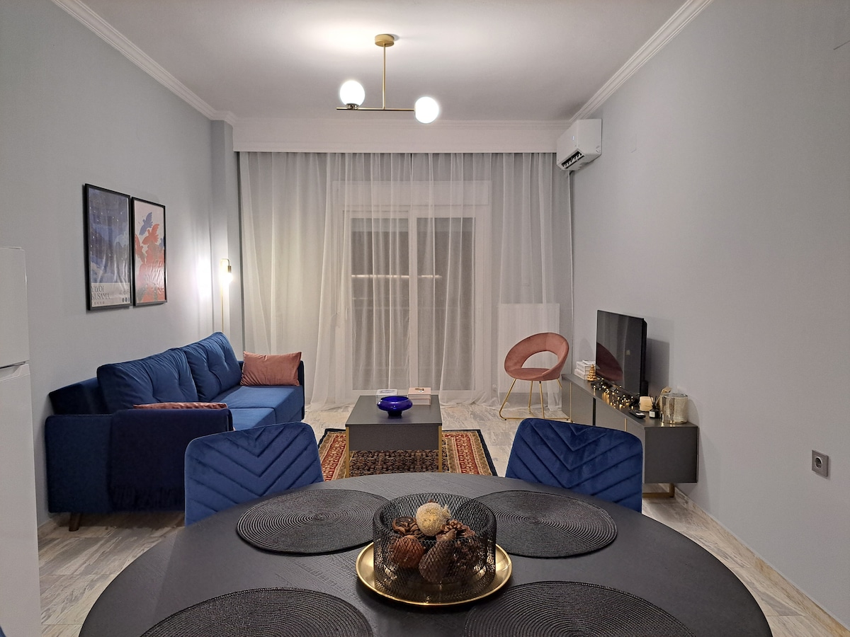Uyemukelwa ku- "The Cozy Cine-Hub"! Istudiyo esilungiswe ngokuphelele, sesimanje, esingamamitha angu-400 kuphela ukusuka enkabeni yedolobha nenkundla ye-Panserraikos. Ilungele ukujabulela ukunethezeka nokuzola kwakho, nazo zonke izidingo eziqhele ngezinyawo. Nakuba iphinde inikeze indawo yokupaka esayithini yesakhiwo. Istudiyo sivelele nge-Smart TV yaso engu-58 ’, enokufinyelela ku-Netflix okusungula umuzwa wamabhayisikobho, okulungele ukuphumula. Woza ujabulele okokuzithokozisa kokuhlala okuyingqayizivele!