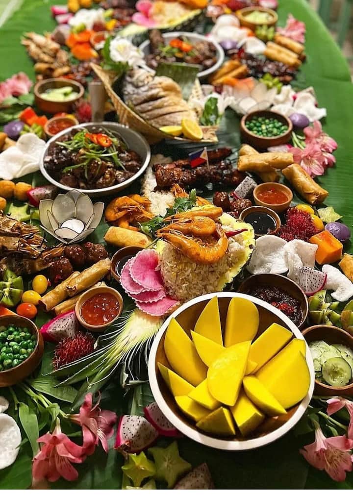 Leli tafula lamadlelo lihlanganisa irayisi, isoseji, inhlanzi entsha, imiqulu yamaqanda, izimfanzi, imifino enesitimu, nezithelo. Inencasa kakhulu ngaphandle kokuhlobisa.